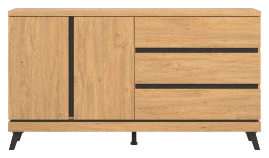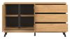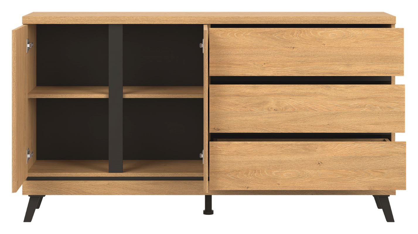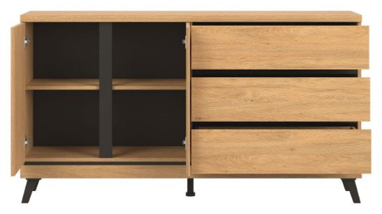 Komoda ATE AT03 o uniwersalnym zastosowaniu wyposażona została w trzy szuflady przestronną szafkę z jedna półką, która umożliwi dobrą organizację dla potrzebnych drobiazgów. Duża powierzchnia blatu pozwoli na wyeksponowanie dekoracji.