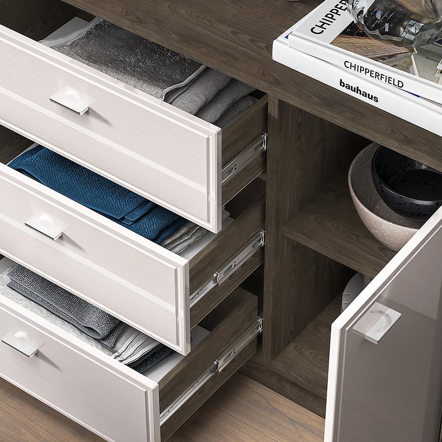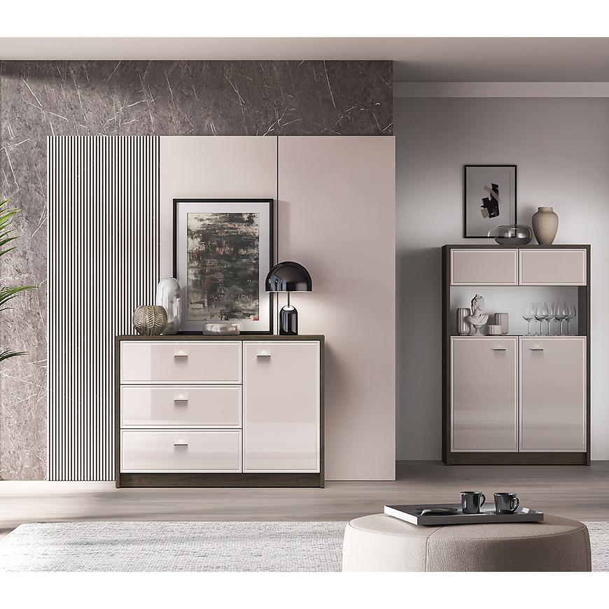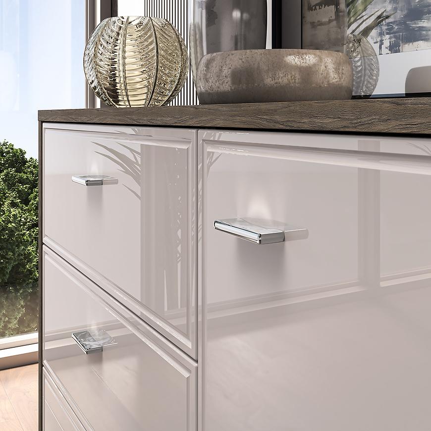 Kolekcja Avante to propozycja dla osób ceniących połączenie klasycznego stylu z nowoczesnym wykończeniem. Starannie dobrane zestawienie kolorystyczne – fronty w barwie cashmere z eleganckim połyskiem oraz korpus w dekorze dąb windmill dark w macie – sprawia, że meble prezentują się elegancko i ponadczasowo. Subtelne kontrasty między jasnym odcieniem frontów a ciemniejszym wykończeniem korpusu nadają bryłom wyrafinowanego charakteru, który doskonale sprawdzi się zarówno w pokoju dziennym, jak i w sypialni.