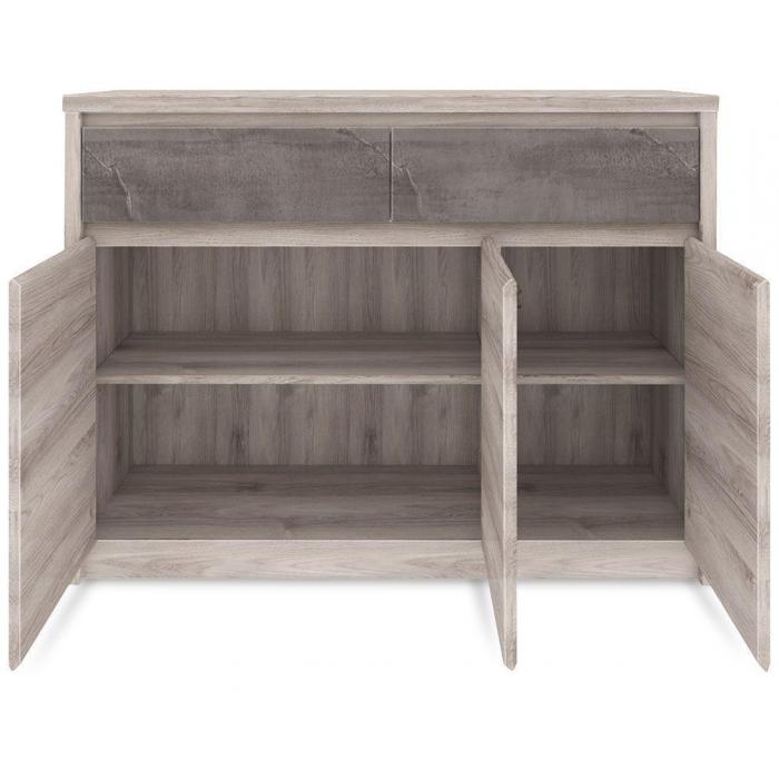Komoda Axer 3D2S prosta w swojej budowie komoda o geometrycznych kształtach odmieni Twoje mieszkanie, dzięki czemu będzie wyglądało pięknie i gustownie. Komoda to pojemna przestrzeń, która będzie miejscem idealnym na przechowywanie Twojej odzieży. Równie dobrze komoda może być schowkiem na inne przedmioty codziennego użytku. Produkt wyposażony jest w dwie szuflady oraz dwie szafki różnej wielkości, każda wyposażona w półkę, które bez trudu umożliwią rozmieszczenie Twoich rzeczy wewnątrz komody. Szuflady wyposażone są w prowadnice kulkowe, co gwarantuje niezwykle ciche otwieranie i zamykanie. Komoda Axer 3D2S dostępna w modnym kolorze Kasztan Nairobi i Onyx, która swoim uniwersalnym, a zarazem prostym wyglądem i odcieniem będzie stanowiła dopełnienie każdego pomieszczenia Twojego mieszkania. Mebel do samodzielnego montażu.