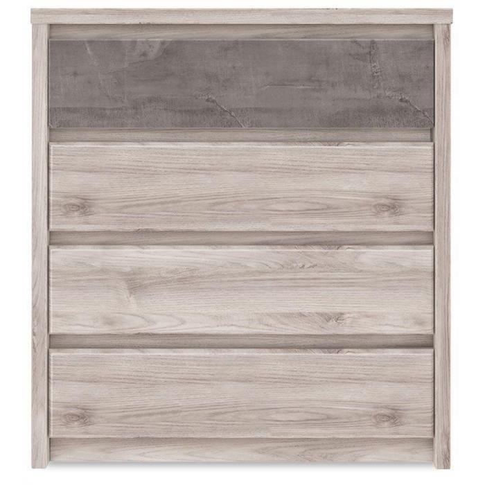 Komoda Axer 4s cechuje się ponadczasową elegancją, jednocześnie wpisując się w dominujący w naszych czasach nurt minimalizmu. Mebel wykonano w kolorze Kasztan Nairobi z ozdobnymi wstawkami na frontach w kolorze Onyx. Sprawdzi się w pokoju dziennym, sypialni, a nawet w korytarzu wejściowym, np. jako szafka na buty. Barwa, w której występuje, kojarzy się z naturalnym drewnem, a popielaty kolor sprawia, że dopasowuje się do każdego koloru ścian. Składa się z 4 szuflad, które zaprojektowano bez uchwytów, co wpływa na bezpieczeństwo dzieci. Szuflady montuje się na prowadnicach kulkowych, dzięki temu mamy szybki i wygodny dostęp do potrzebnych nam przedmiotów. Funkcjonalna Komoda Axer 4s ma wymiary 86,5 cm x 40 cm x 95 cm, dzięki którym dobrze wpasowuje się w przestrzeń, nie stając się ani przedmiotem dominującym, ani obojętnym w wystroju wnętrza. Wykonana ze specjalnie laminowanej płyty z delikatnym pogrubieniem boków stanie się ozdobą każdego pomieszczenia. Mebel do samodzielnego montażu.