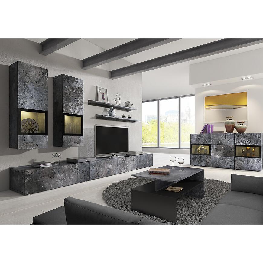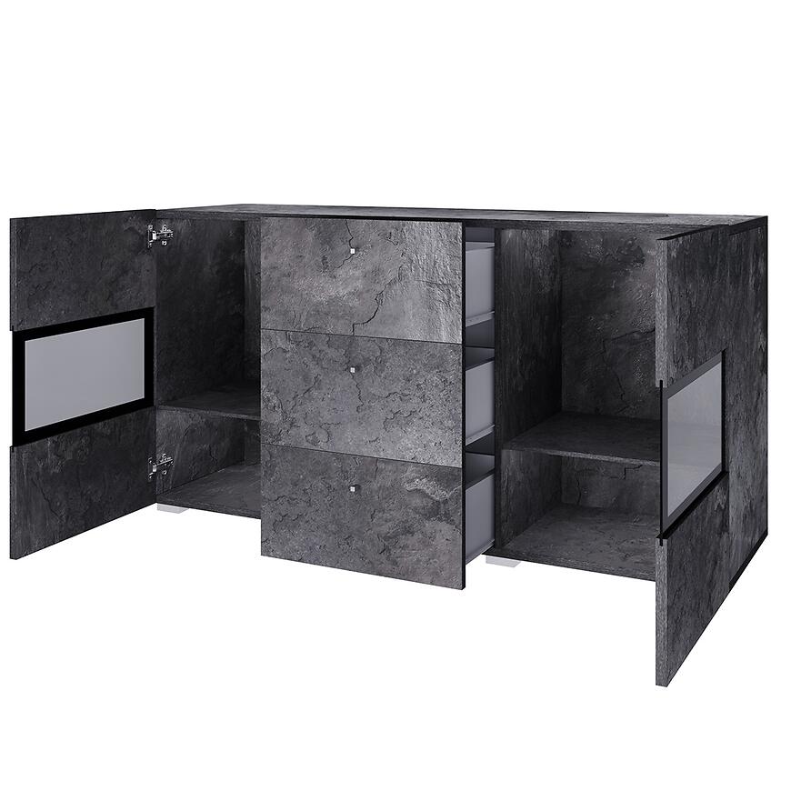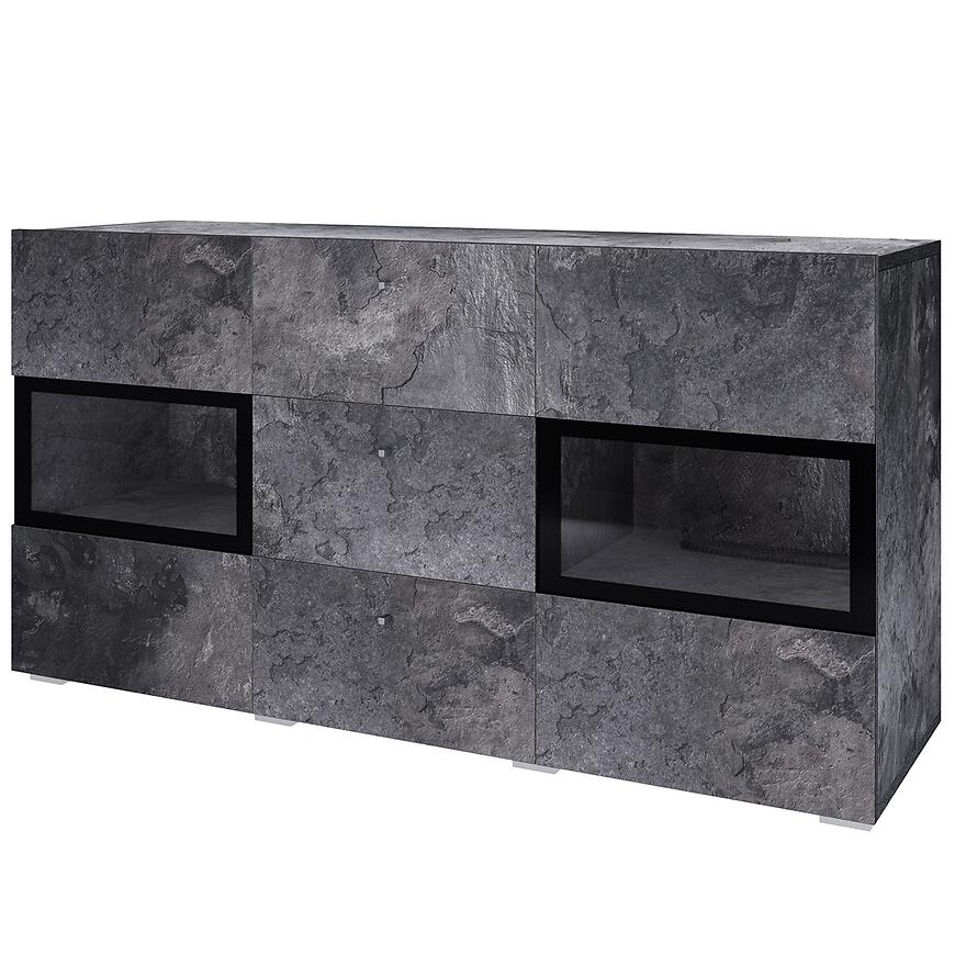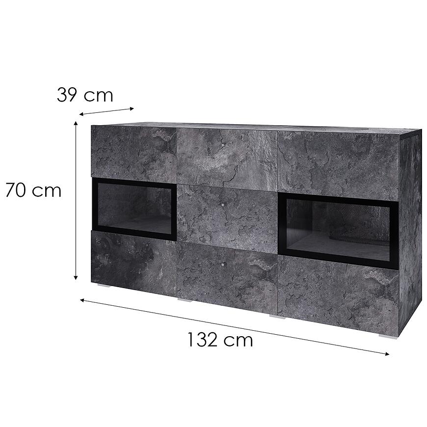 Komoda Baros w kolorze ciemny beton to idealny mebel do nowoczesnych wnętrz, łączący minimalistyczny design z praktyczną funkcjonalnością. Wykonana w całości z laminowanej płyty wiórowej, komoda zachwyca matowym wykończeniem frontów i korpusu, które nadają wnętrzu subtelnej elegancji.