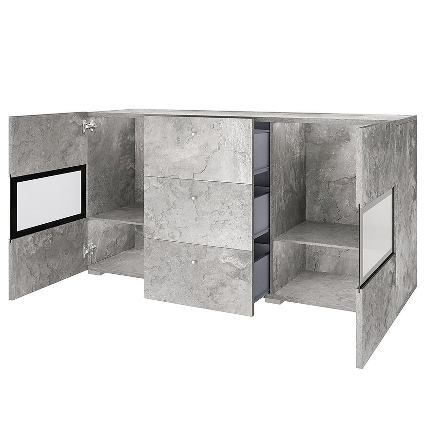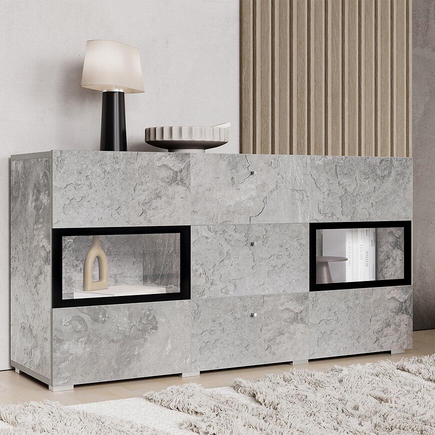 Komoda Baros w kolorze jasny beton to idealny mebel do nowoczesnych wnętrz, łączący minimalistyczny design z praktyczną funkcjonalnością. Wykonana w całości z laminowanej płyty wiórowej, komoda zachwyca matowym wykończeniem frontów i korpusu, które nadają wnętrzu subtelnej elegancji.
