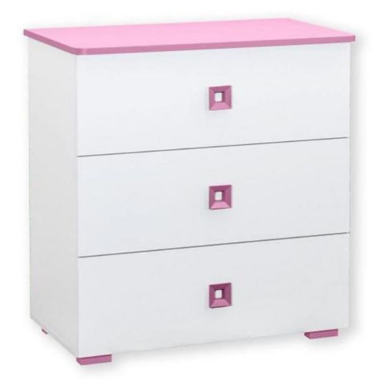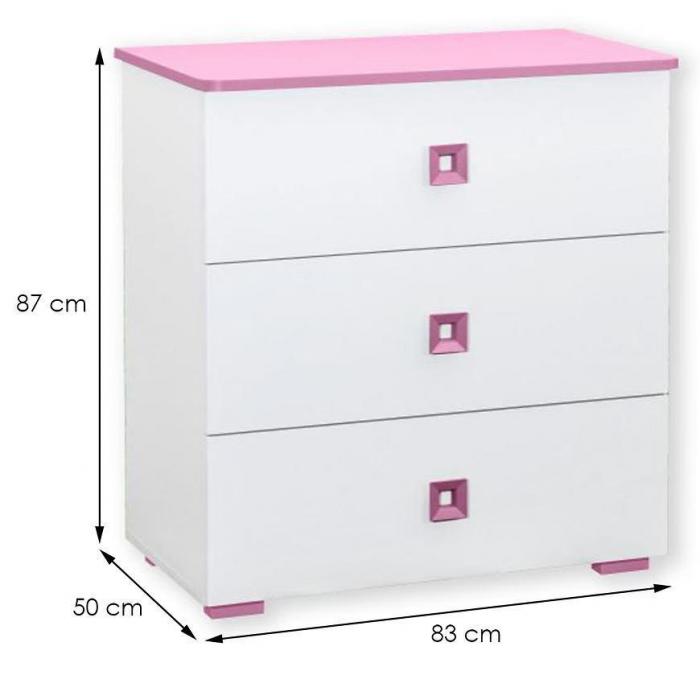 Materiał wykonania to płyta laminowana. Komoda posiada trzy szuflady z uchwytami dzięki czemu ma łatwy dostęp do wnętrza. Mebel dopełni również wystrój salonu, czy przedpokoju, stanowiąc wygodne miejsce do przechowywania mniejszych i większych rzeczy. Mebel do samodzielnego montażu.