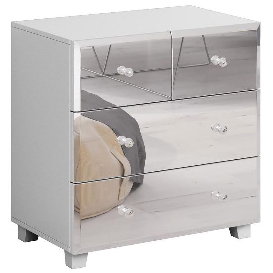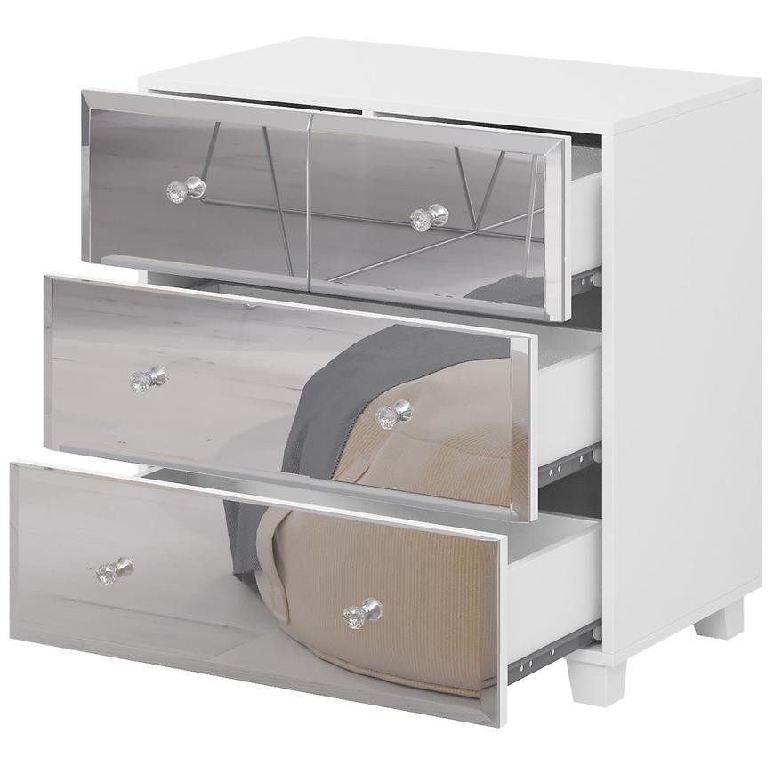 Wybarwienie w białym kolorze i lustrzane fronty nadają wnętrzu elegancji i lekkości. Fronty zostały wykończone połyskiem, co dodaje meblowi nowoczesnego charakteru, podczas gdy matowy korpus tworzy subtelny kontrast. To mebel, który z pewnością przyciągnie uwagę i nada Twojemu wnętrzu wyjątkowy styl.