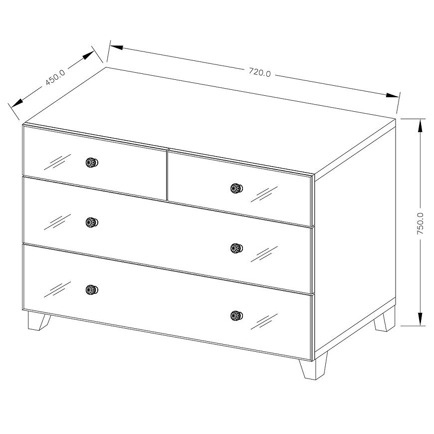 Komoda Bellagio została wykonana z wysokiej jakości płyty MDF, co gwarantuje jej trwałość i odporność na uszkodzenia. Zarówno fronty, jak i korpus mebla zostały starannie dopracowane, aby sprostać wymaganiom nawet najbardziej wymagających użytkowników.