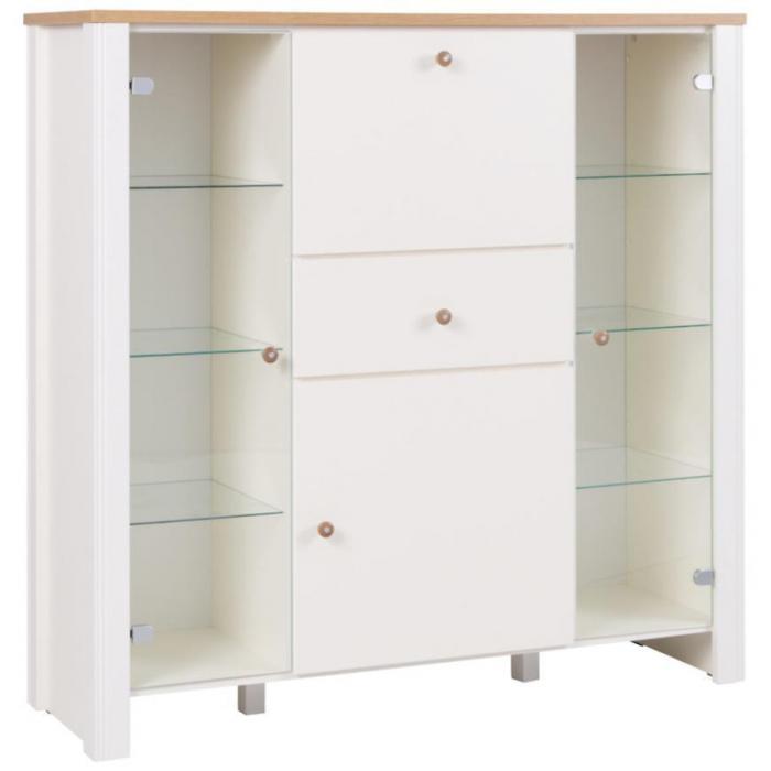 Doskonałym wyborem do pokoju dziennego będzie komoda w kolorze crem/dąb złoty z serii Berg, materiał wykonania to płyta laminowana. Komoda posiada drzwiczki i szufladę dzięki czemu ma łatwy dostęp do wnętrza. Komoda dopełni również wystrój salonu, czy przedpokoju, stanowiąc wygodne miejsce do przechowywania mniejszych i większych rzeczy. Mebel do samodzielnego montażu.