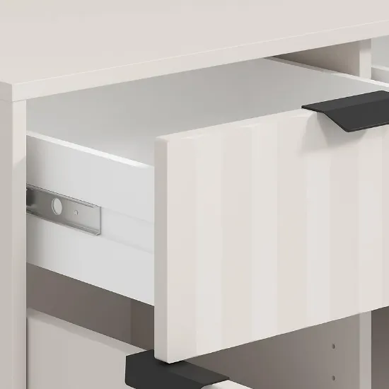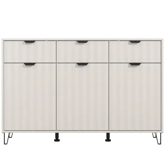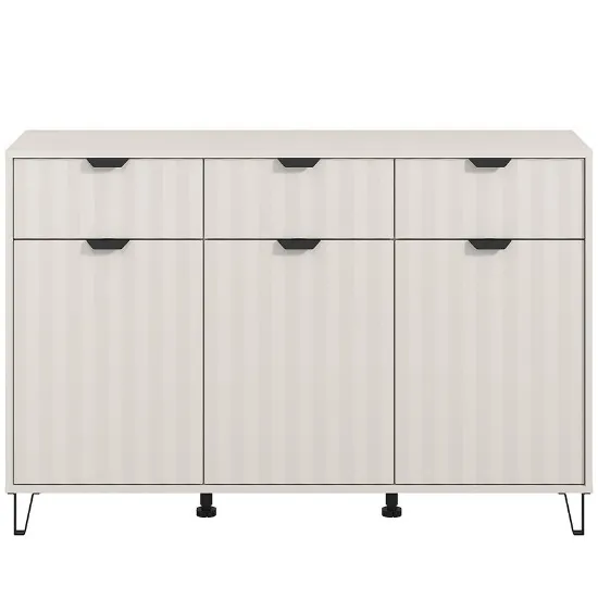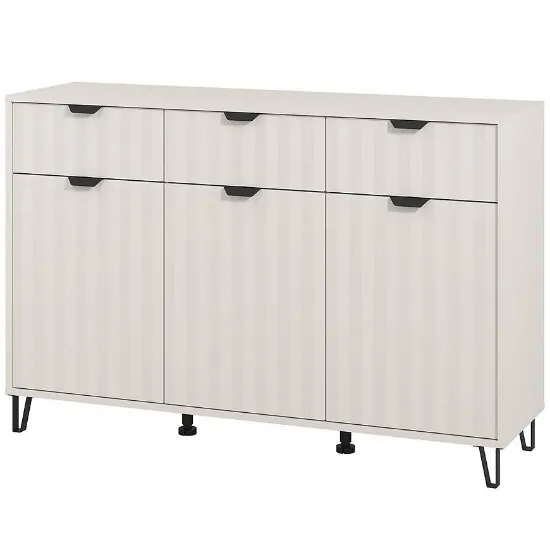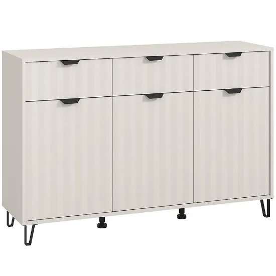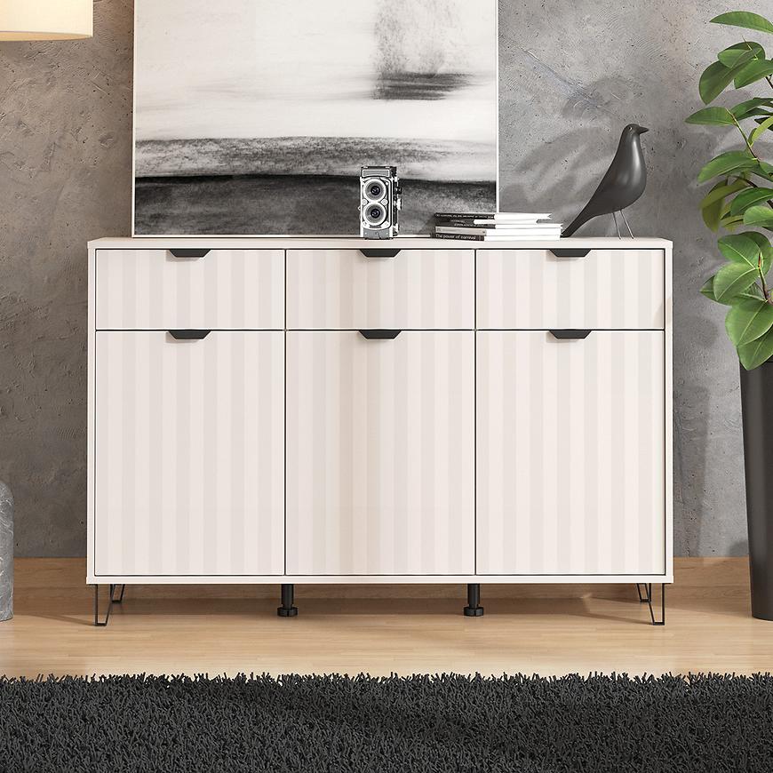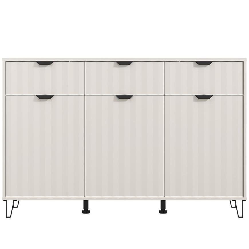 Model dostępny w modnym kolorze kaszmirowym, doskonale komponuje się z nowoczesnymi aranżacjami, wprowadzając do pomieszczenia subtelną harmonię i ciepło. Komoda Best wyposażona została w trzy pojemne szuflady i 3 drzwi, które ułatwiają organizację przestrzeni i przechowywanie niezbędnych rzeczy – od ubrań po drobiazgi domowe.