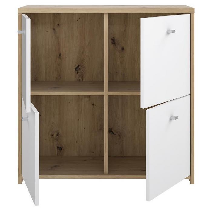 Komoda z kolekcji Best Chest idealnie wpasuje się w nowoczesne jak i klasyczne wnętrza. Kolor mebla dąb artisan/biały będzie pasował do wielu wnętrz. Komoda dopełni również wystrój salonu, czy przedpokoju, stanowiąc wygodne miejsce do przechowywania mniejszych i większych rzeczy. Mebel do samodzielnego montażu.