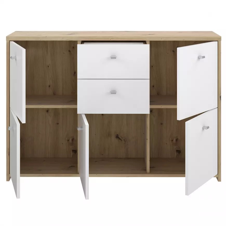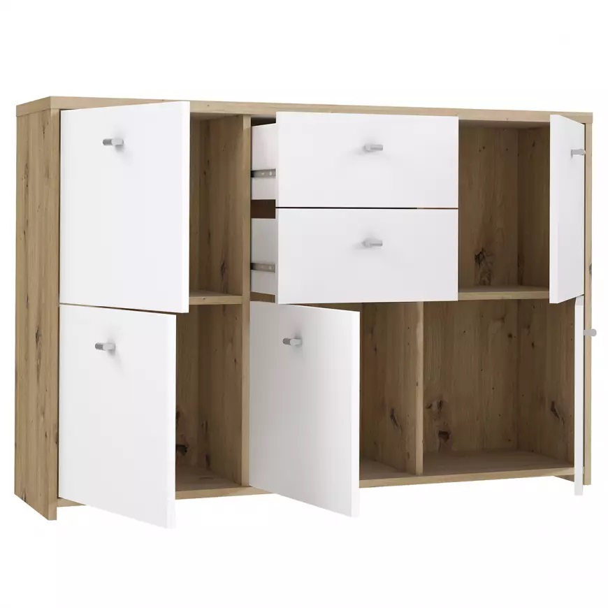 Komoda z kolekcji Best Chest idealnie wpasuje się w nowoczesne jak i klasyczne wnętrza. Kolor mebla dąb artisan/biały będzie pasował do wielu wnętrz.