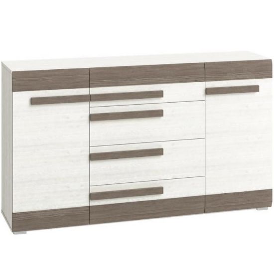 Doskonałym wyborem do pokoju dziennego będzie komoda w kolorze sosna śnieżna/new grey z serii Blanco, materiał wykonania to płyta laminowana. Komoda posiada szafki i szuflady dzięki czemu ma łatwy dostęp do wnętrza. Komoda dopełni również wystrój salonu, czy przedpokoju, stanowiąc wygodne miejsce do przechowywania mniejszych i większych rzeczy. Mebel do samodzielnego montażu.