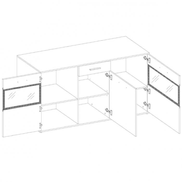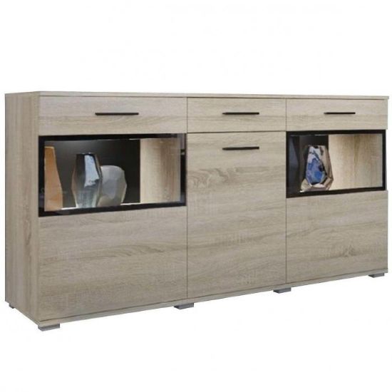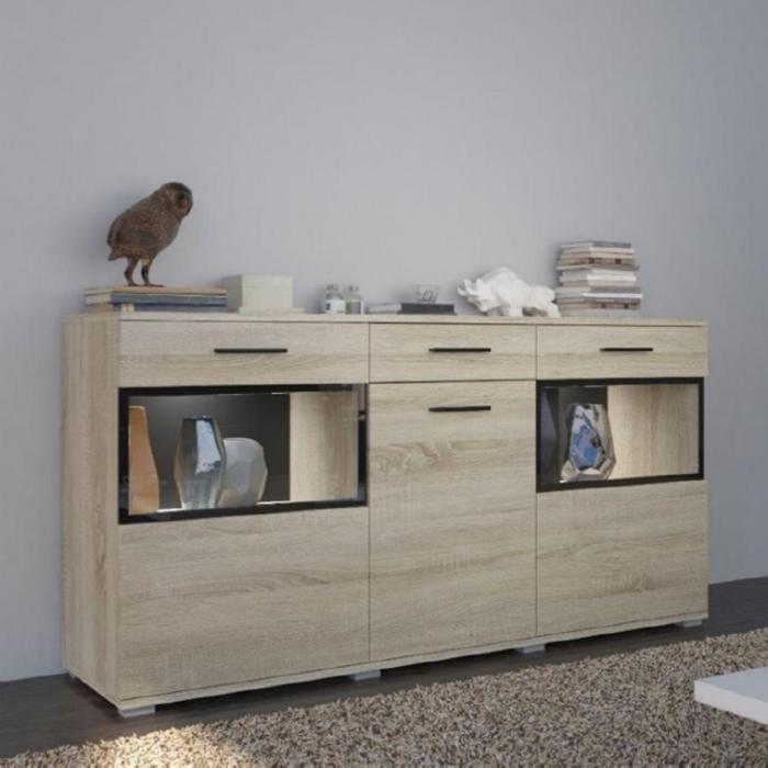 Komoda z kolekcji Blues utrzymana jest w odcieniu dąb sonoma. Jasna kolorystyka mebla sprawi, że pomieszczenie, w której zostanie umieszczona będzie optycznie powiększone. Komoda doskonale dopasuje się do nowoczesnego salonu lub jadalni. Materiał wykonania to płyta laminowana. Komoda posiada szafki oraz szufladę dzięki czemu ma łatwy dostęp do wnętrza. Komoda dopełni również wystrój salonu, czy przedpokoju, stanowiąc wygodne miejsce do przechowywania mniejszych i większych rzeczy. Mebel do samodzielnego montażu.