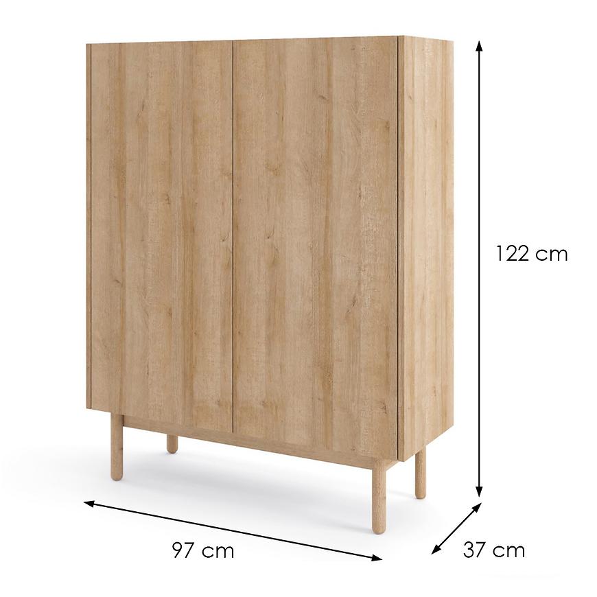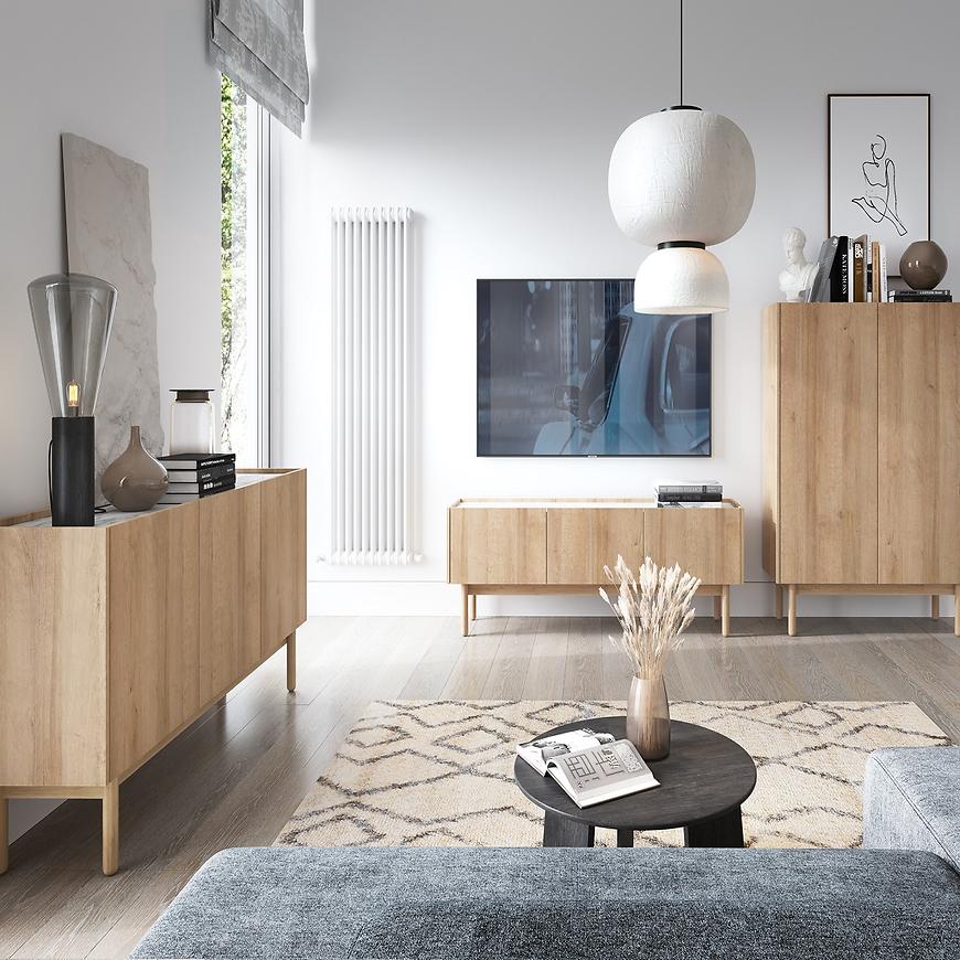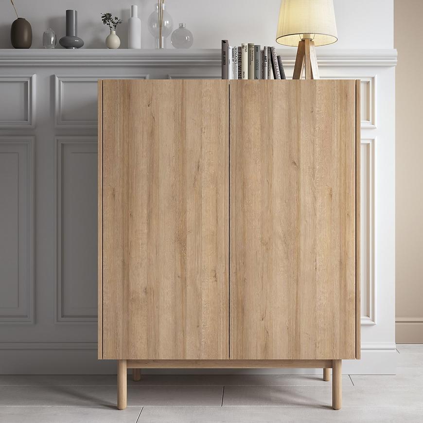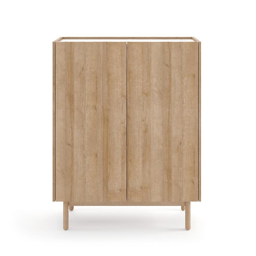 Dwudrzwiowa komoda BOHO oferuje obszerną przestrzeń do przechowywania, umożliwiając efektywne zarządzanie domowym dobytkiem. Wewnątrz znajdują się półki, które pomogą zorganizować przestrzeń i utrzymać porządek w przedmiotach codziennego użytku, od tekstyliów po akcesoria domowe.