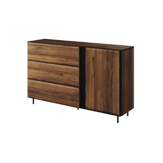 Komoda oferuje dużo miejsca min. do przechowywania odzieży. W trzech pojemnych szufladach wygodnie przechowasz bieliznę, dokumenty czy inne akcesoria. Za drzwiami szafki znajdziesz pojemne półki.