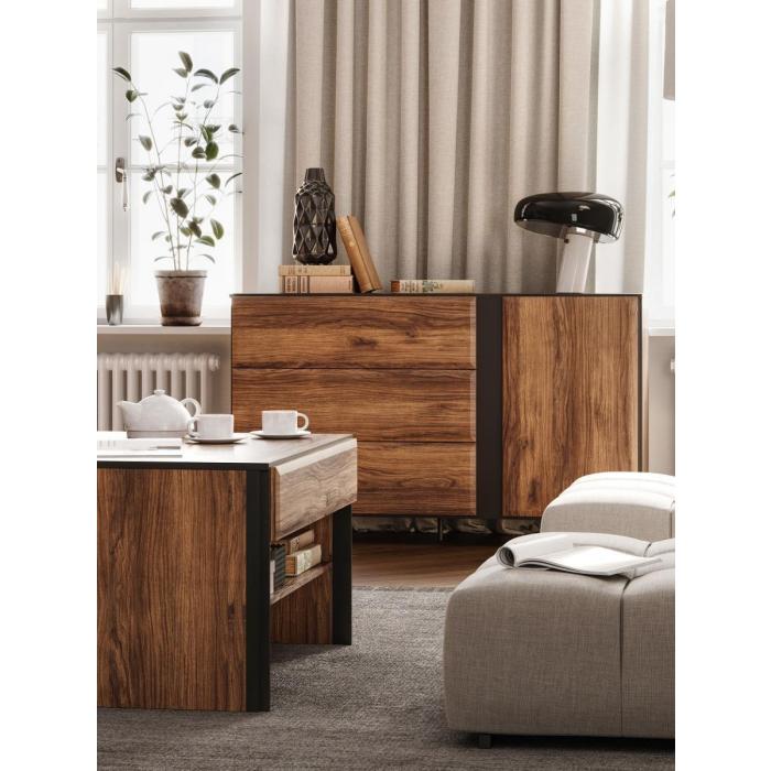 Komodę można połączyć z innymi meblami z kolekcji tworząc w ten sposób ciekawe zestawienie.