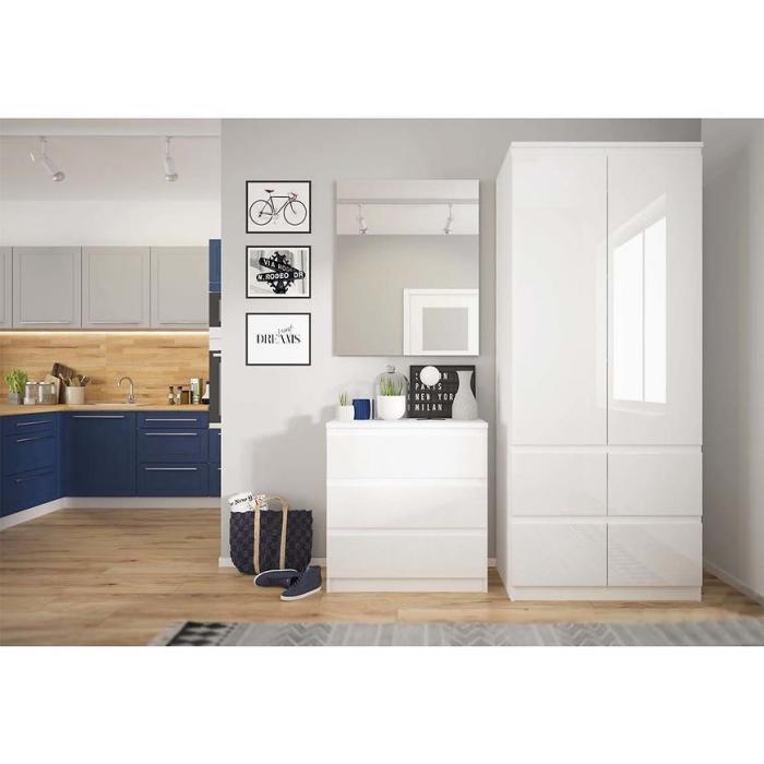 Doskonałym wyborem do pokoju dziennego będzie biała komoda z serii Boston, materiał wykonania to płyta MDF/Mimośrodowa, bez widocznych śrub montażowych. Komoda posiada szuflady dzięki czemu ma łatwy dostęp do wnętrza. Komoda dopełni również wystrój salonu, czy przedpokoju, stanowiąc wygodne miejsce do przechowywania mniejszych i większych rzeczy. Mebel do samodzielnego montażu.
