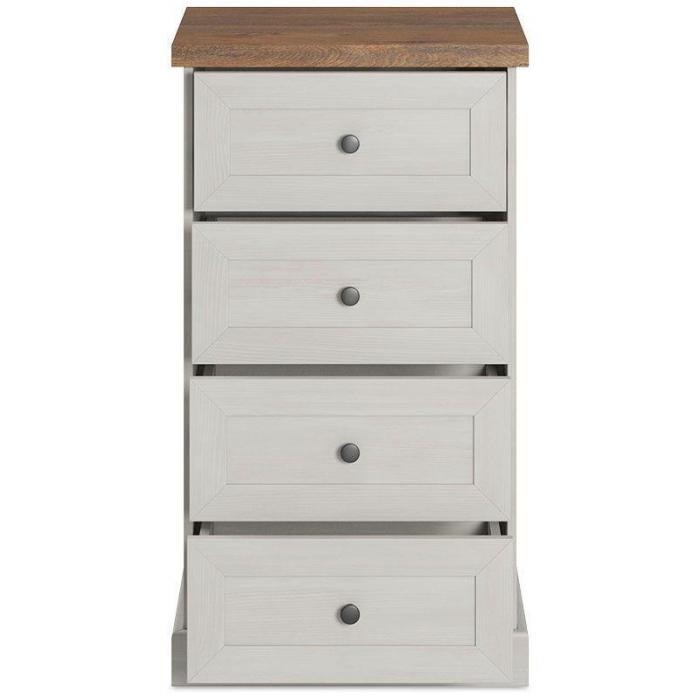 Komoda Boston K4S to idealne dopełnienie pomieszczenia w element służący do przechowywania drobnych rzeczy. Dzięki ponadczasowej konstrukcji, bez trudu dopasujesz ten model do pozostałego wyposażenia wnętrza. Wygodne w użytkowaniu szuflady oraz masywny blat czynią mebel niezwykle funkcjonalnym i przydatnym niemal w każdym domu. Miłośnikom minimalistycznego stylu, z pewnością przypadnie do gustu design projektu, który na pierwszy rzut oka wydaje się dość monotonny, jednak ustawiony z pozostałymi elementami linii Boston, tworzy wyrazistą całość. Uchwyty metalowe w kolorze czarnym, dolne listwy wykończone MDF. Komoda Boston K4S to niezwykle zgrabny mebel, cieszący się niesłabnącym zainteresowaniem klientów, nie tylko ze względu na swoje walory estetyczne, ale także łatwy montaż oraz bezproblemowe utrzymanie modelu w czystości. To również prawdziwa perła wśród mebli, dedykowana dla osób, które nie gospodarują zbyt dużą ilością przestrzeni, a zależy im na atrakcyjnym wyglądzie oraz ponadczasowej stylistyce. Mebel do samodzielnego montażu.
