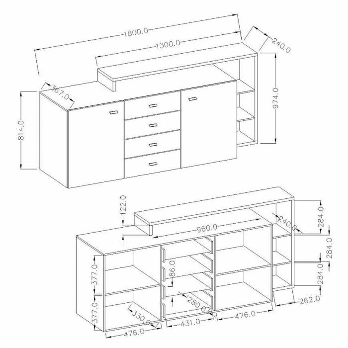 Komoda Bota to ciekawy mebel idealny do pokoju dziennego lub salonu. Komoda wpasuje się w wiele aranżacji w nowoczesnych wnętrzach jak również we wnętrzach klasycznych. Bota to komoda, z dodatkowymi półkami. Szafka posiada szuflady i drzwiczki dzięki czemu ma łatwy dostęp do wnętrza oraz odpowiednią przestrzeń do przechowywania odzieży lub innych przedmiotów. Do kompletu można dokupić inne meble z kolekcji.