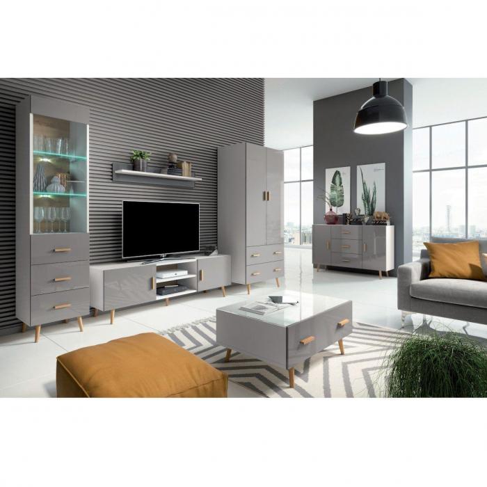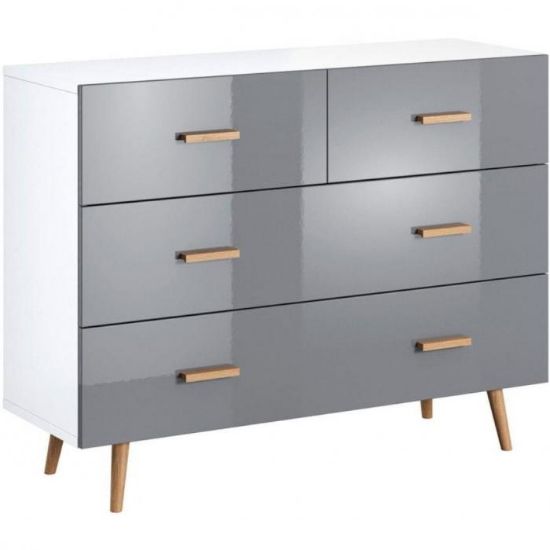 Komoda Brillo to mebel idealny do pokoju dziennego lub salonu. Mebel wpasuje się w wiele aranżacji w nowoczesnych wnętrzach jak również we wnętrzach klasycznych. Kolekcja Brillo wykonana została w kolorze biały/szary lakier. Szafka posiada szuflady, które nadają się do przechowywania odzieży lub innych przedmiotów. Do kompletu można dokupić inne meble z kolekcji.