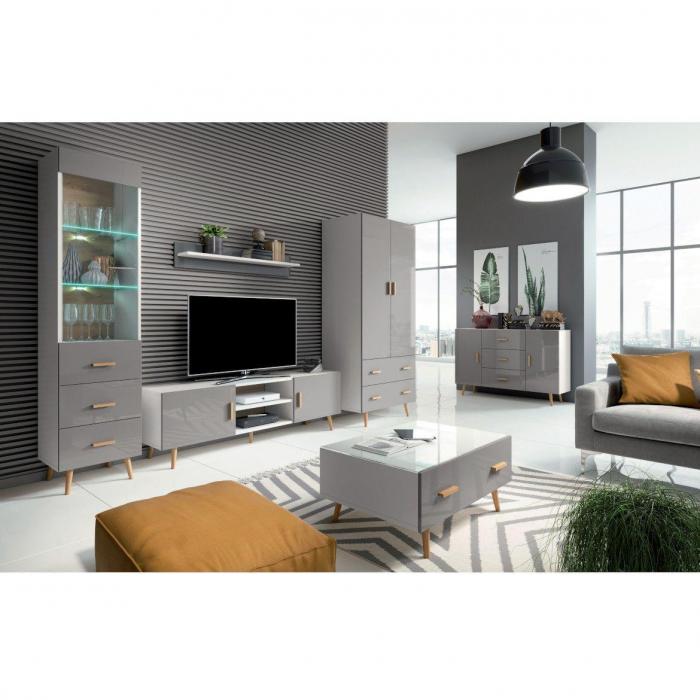 Komoda Brillo to mebel idealny do pokoju dziennego lub salonu. Mebel wpasuje się w wiele aranżacji w nowoczesnych wnętrzach jak również we wnętrzach klasycznych. Kolekcja Brillo wykonana została w kolorze biały/szary lakier. Szafka posiada szuflady, które nadają się do przechowywania odzieży lub innych przedmiotów. Do kompletu można dokupić inne meble z kolekcji.