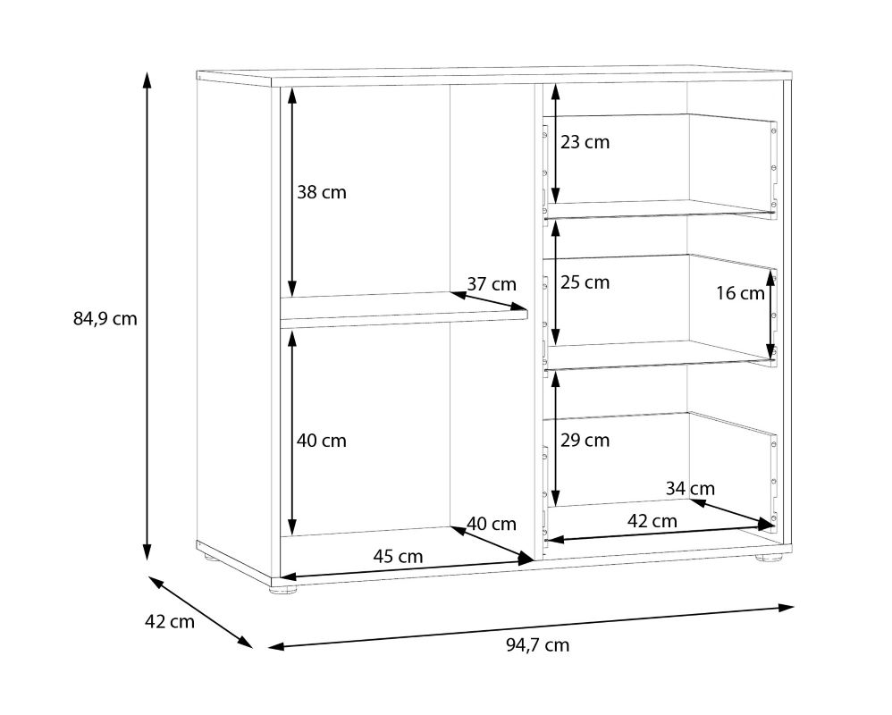 Wykonana z płyty meblowej o grubości 15 mm, komoda charakteryzuje się solidnością i trwałością, zapewniając długie lata użytkowania. Jej subtelne wykończenie i naturalne barwy sprawiają, że z łatwością dopasuje się do różnych stylów aranżacji – od klasycznego po nowoczesny. Uchwyty wykonane z trwałego tworzywa w kolorze czarnym podkreślają nowoczesny design i zapewniają wygodę użytkowania.