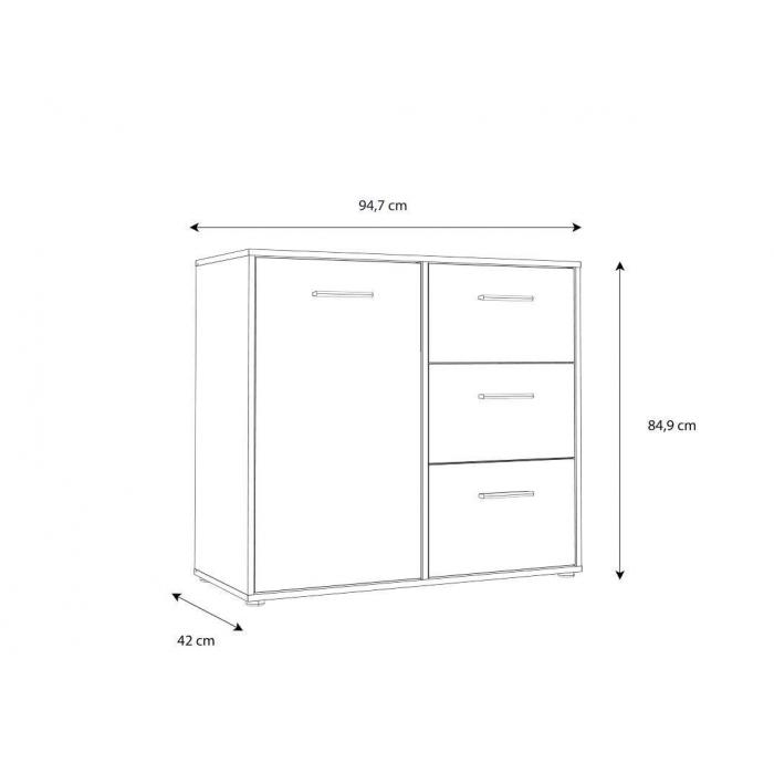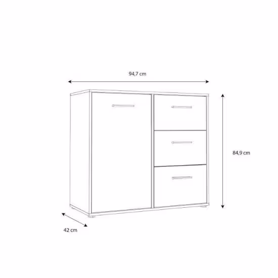 Kompaktowe wymiary 94,7×42×84,9 cm sprawiają, że komoda Calvado MOKK221L doskonale sprawdzi się w salonie, sypialni czy przedpokoju, oferując praktyczne i estetyczne miejsce do przechowywania. Matowe wykończenie minimalizuje widoczność odcisków palców i ułatwia utrzymanie mebla w czystości, a solidna konstrukcja gwarantuje stabilność i trwałość przez wiele lat użytkowania. Komoda wymaga samodzielnego montażu, co pozwala na wygodne wniesienie i ustawienie jej w dowolnym miejscu.