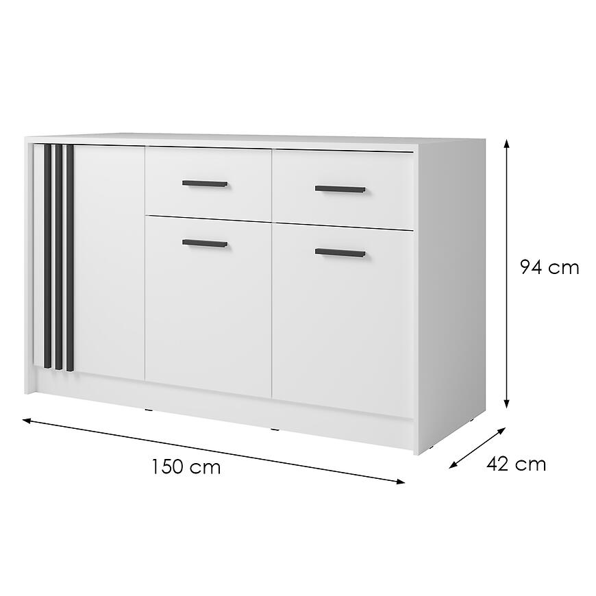 Szerokość 150 cm zapewnia dużą przestrzeń użytkową, dzięki czemu komoda łączy estetyczny wygląd z wysoką funkcjonalnością.