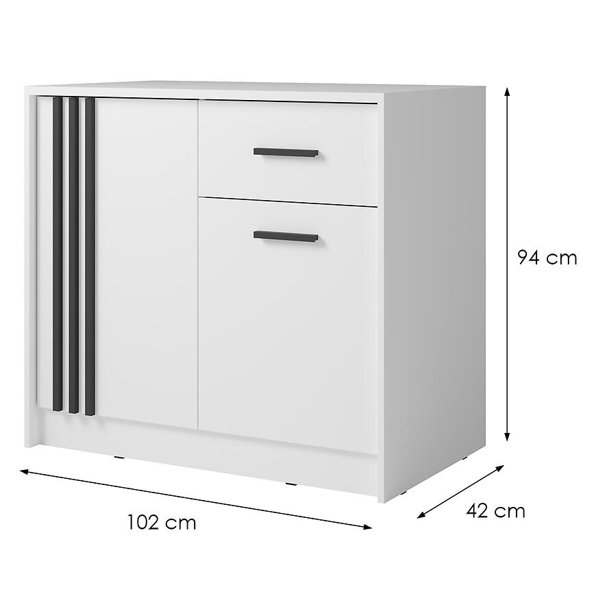 Dzięki wymiarom 102 cm szerokości, 94 cm wysokości i 42 cm głębokości model oferuje praktyczną przestrzeń do przechowywania, zachowując kompaktowy i uporządkowany wygląd.