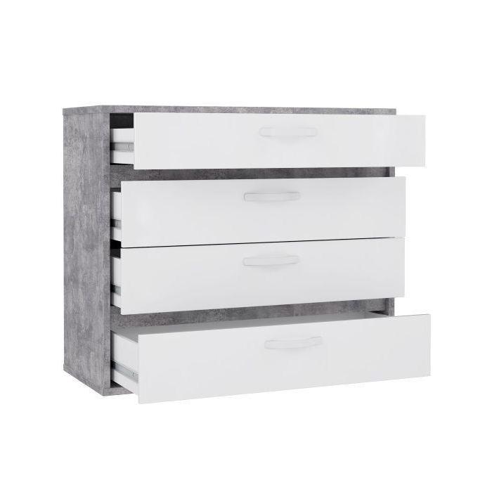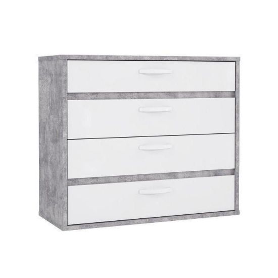 Doskonałym wyborem do pokoju dziennego będzie komoda w kolorze beton/biały z serii Canmore, materiał wykonania to płyta wiórowa. Komoda posiada szuflady dzięki czemu ma łatwy dostęp do wnętrza. Komoda dopełni również wystrój salonu, czy przedpokoju, stanowiąc wygodne miejsce do przechowywania mniejszych i większych rzeczy. Mebel do samodzielnego montażu.