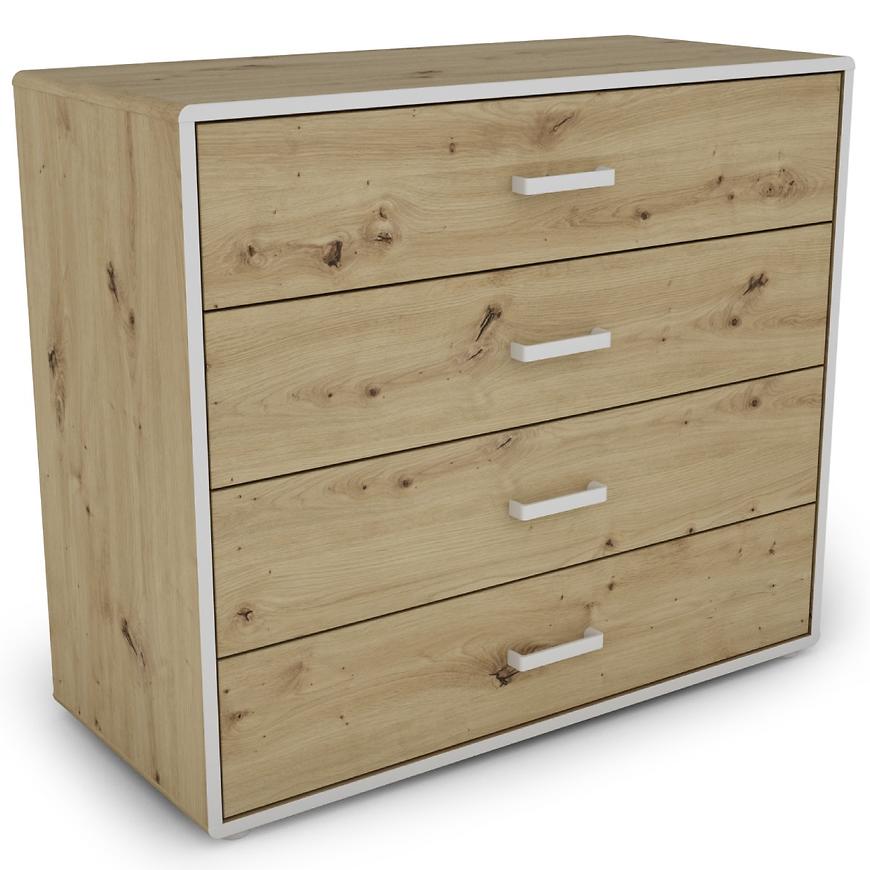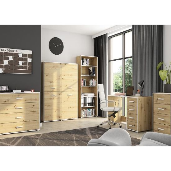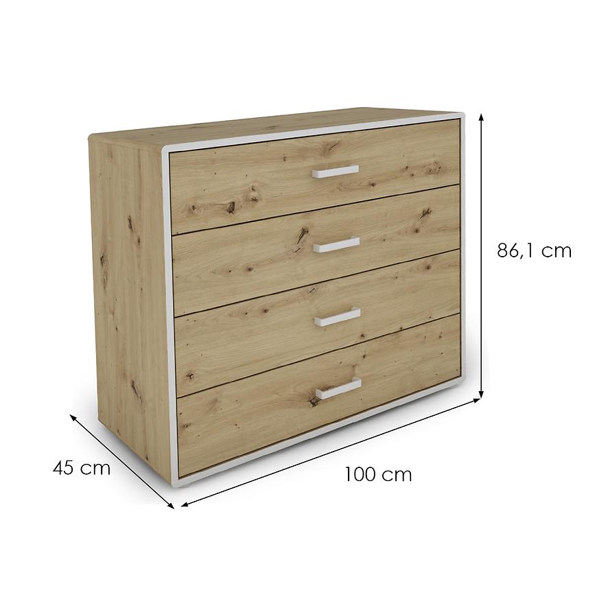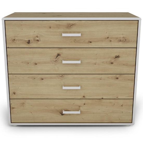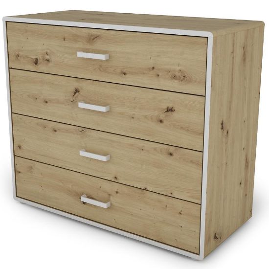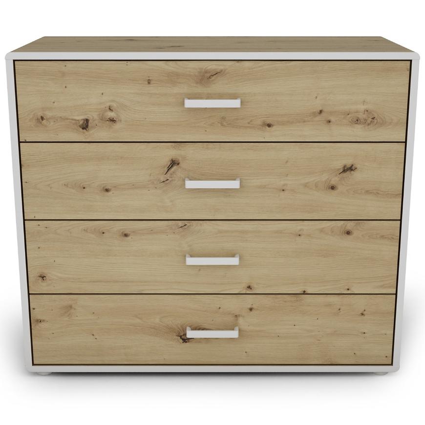Styl nowoczesny, który emanuje z każdego elementu tej komody, wprowadzi świeży i minimalistyczny akcent do Twojego wnętrza. Kolor dąb artisan/biały to subtelne zestawienie ciepłego odcienia drewna z delikatną bielą, tworząc harmonijną równowagę pomiędzy naturalnym pięknem a nowoczesnym designem.