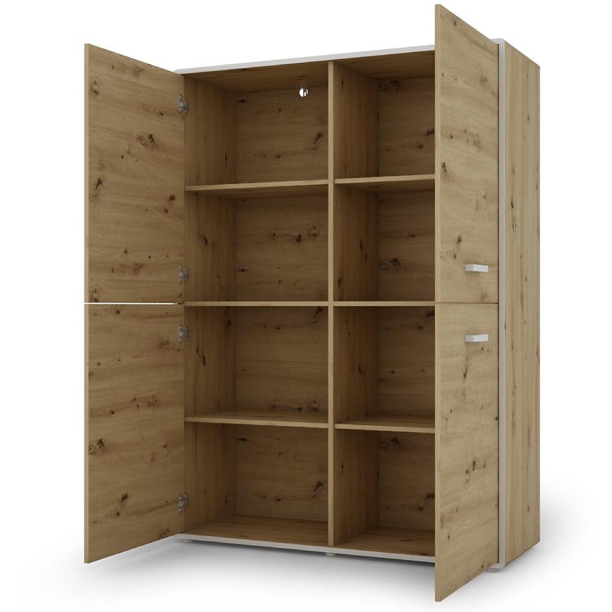 Styl nowoczesny, który emanuje z każdego elementu tej komody, wprowadzi świeży i minimalistyczny akcent do Twojego wnętrza. Jej prosta, geometryczna forma w połączeniu z eleganckim wykończeniem dębu artisan i bieli nadaje meblowi niepowtarzalny charakter. To wyważone zestawienie kolorów i kształtów tworzy kompozycję, która przyciąga uwagę i doskonale komponuje się z nowoczesnym wystrojem wnętrza. Ogromna ilość miejsca do przechowywania dodatkowo sprawia, że będzie to praktyczne rozwiązowanie.