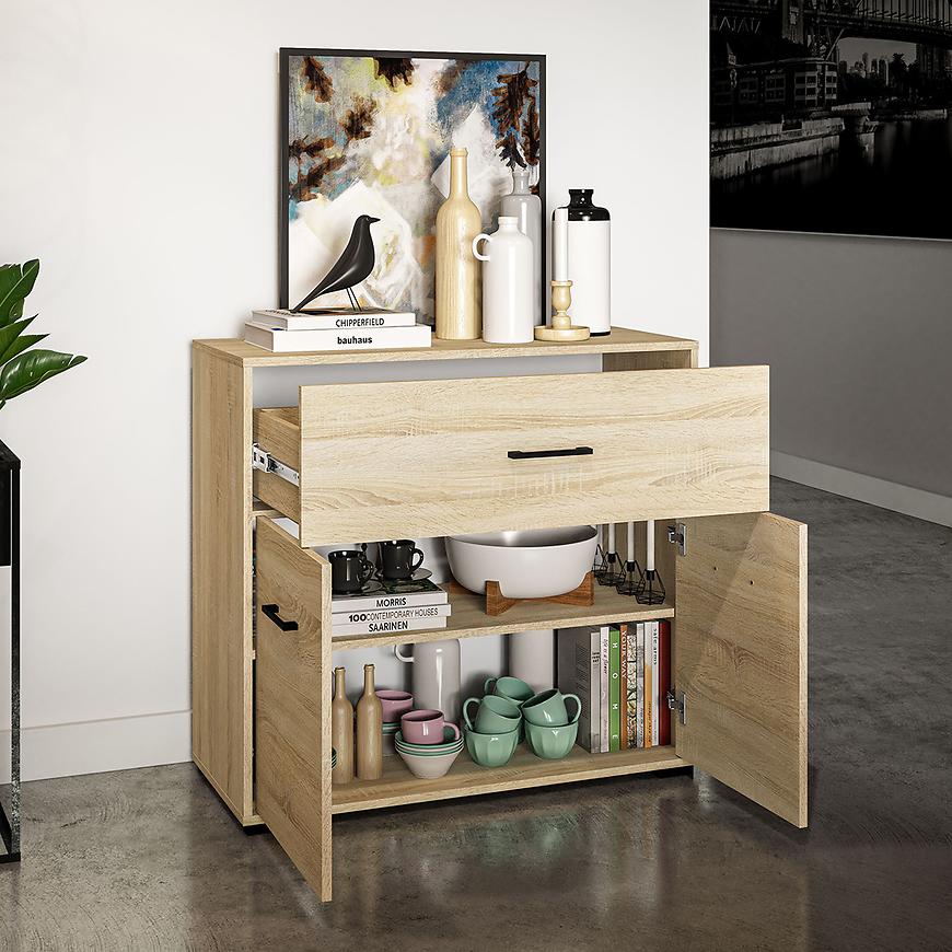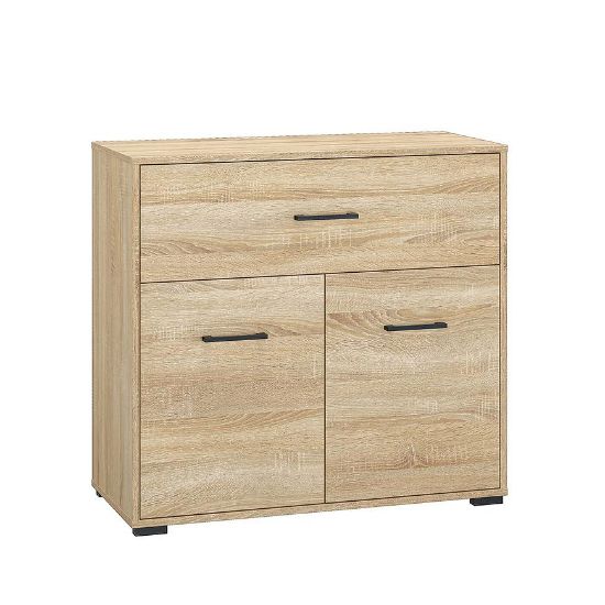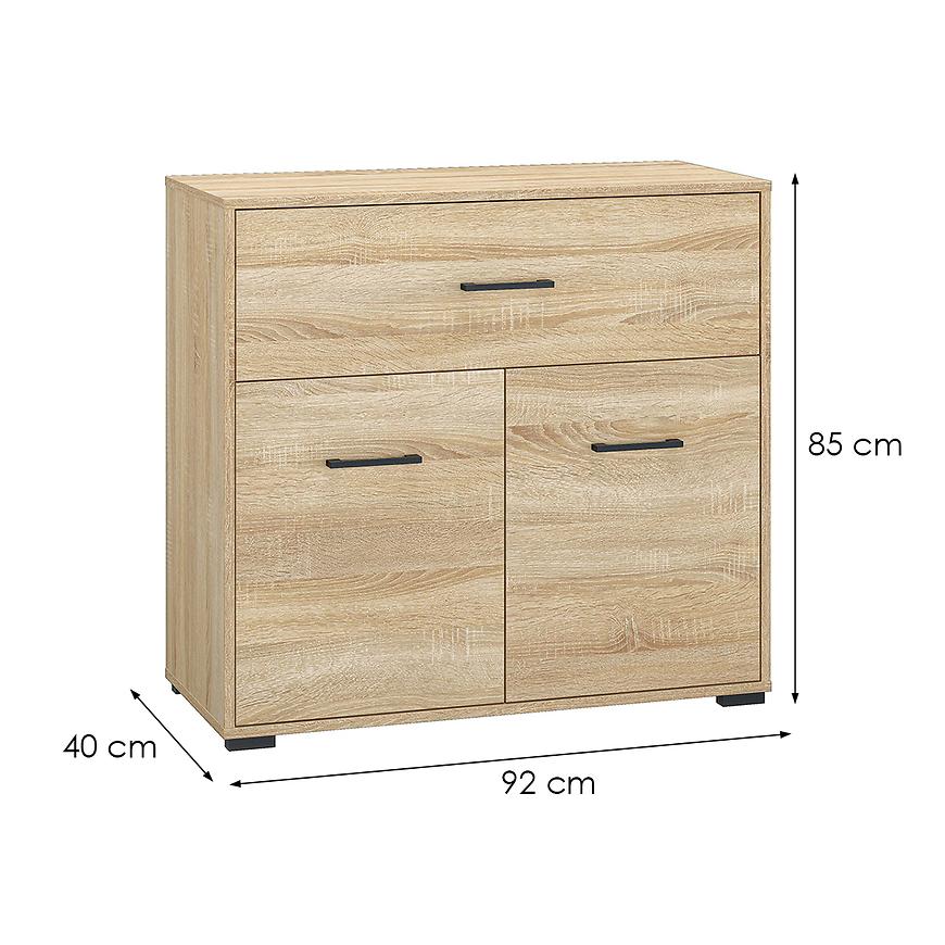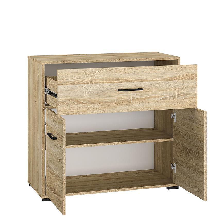 Komoda Caro 23 w wybarwieniu dąb sonoma to elegancki i praktyczny mebel, który doskonale wpasuje się w różnorodne wnętrza. Jej dwudrzwiowa konstrukcja i jedna otwierana szuflada zapewniają dużą ilość miejsca do przechowywania, a zarazem umożliwiają utrzymanie porządku w pomieszczeniu.