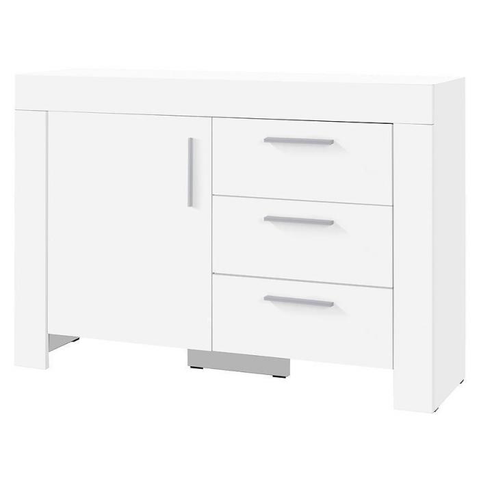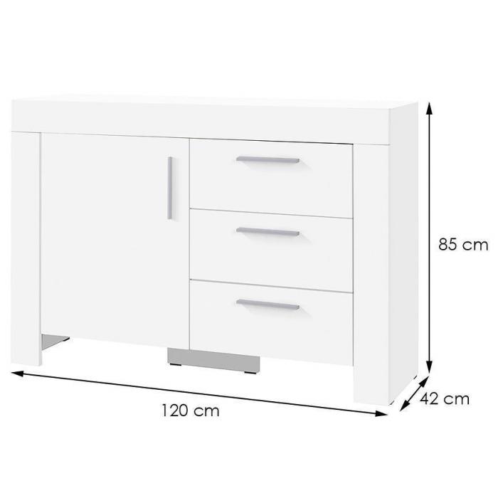 Doskonałym wyborem do pokoju dziennego, czy młodzieżowego będzie komoda w kolorze białym, materiał wykonania to płyta laminowana. Komoda jest jednodrzwiowa i posiada trzy szuflady dzięki czemu ma łatwy dostęp do wnętrza. Komoda dopełni również wystrój salonu, czy przedpokoju, stanowiąc wygodne miejsce do przechowywania mniejszych i większych rzeczy. Mebel do samodzielnego montażu.