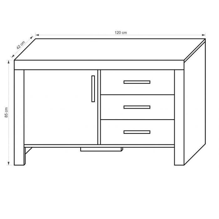 Komoda Cezar to klasyczny mebel do pokoju dziennego, sypialni lub przedpokoju. Wpasuje się w wiele aranżacji w nowoczesnych wnętrzach jak również we wnętrzach klasycznych. Kolekcja Cezar wykonana została w kolorze dąb sonoma, który imituje naturalny rysunek słojów. Aranżacje inspirowane drewnem nie tracą na popularności. Szafka posiada szuflady i drzwiczki dzięki czemu ma łatwy dostęp do wnętrza oraz odpowiednią przestrzeń do przechowywania odzieży lub innych przedmiotów. Płyta laminowana to płyta, z której wykonano komodę. Do kompletu można dokupić inne meble z kolekcji.