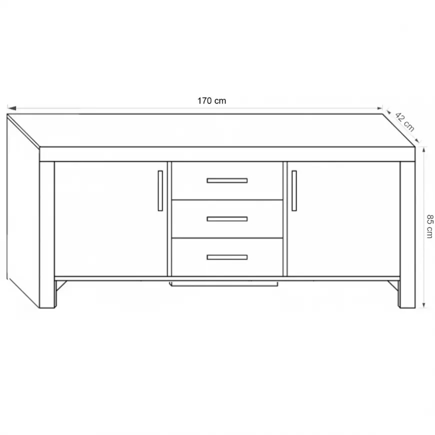 Komoda Cezar to klasyczny mebel do pokoju dziennego, sypialni lub przedpokoju. Wpasuje się w wiele aranżacji w nowoczesnych wnętrzach jak również we wnętrzach klasycznych. Kolekcja Cezar wykonana została w kolorze dąb sonoma, który imituje naturalny rysunek słojów. Aranżacje inspirowane drewnem nie tracą na popularności. Szafka posiada szuflady i drzwiczki dzięki czemu ma łatwy dostęp do wnętrza oraz odpowiednią przestrzeń do przechowywania odzieży lub innych przedmiotów. Płyta laminowana to płyta, z której wykonano komodę. Do kompletu można dokupić inne meble z kolekcji.