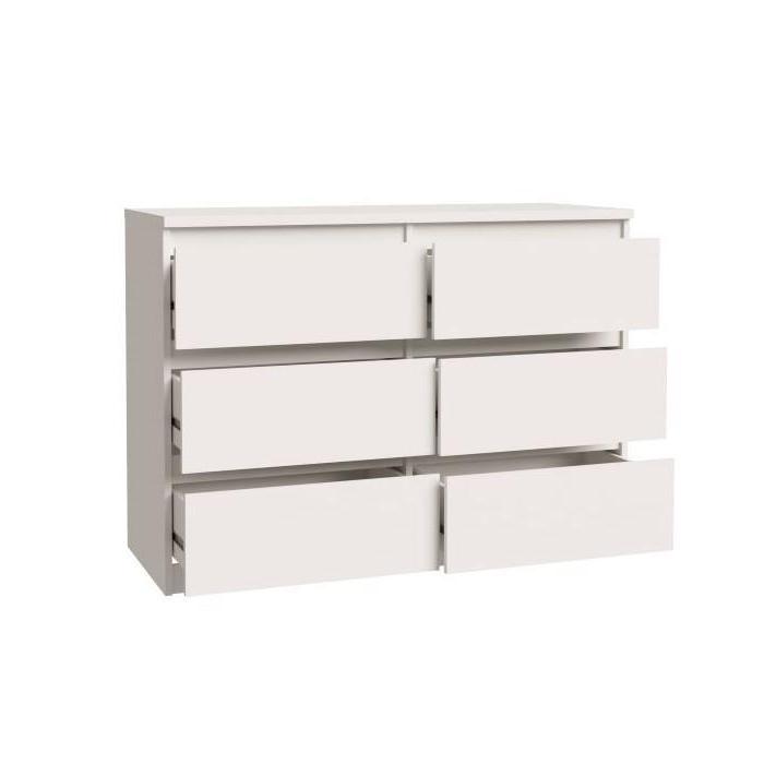 Biała komoda Chelsea to połączenie elegancji, stylu i funkcjonalności. Komoda wpasuje się w wiele aranżacji w nowoczesnych wnętrzach jak również we wnętrzach klasycznych. Szafka posiada szuflady z systemem bezuchwytowym do przechowywania odzieży lub innych przedmiotów. Płyta meblowa to płyta, z której wykonano komodę.