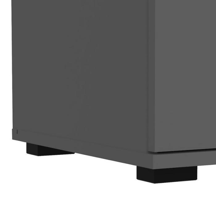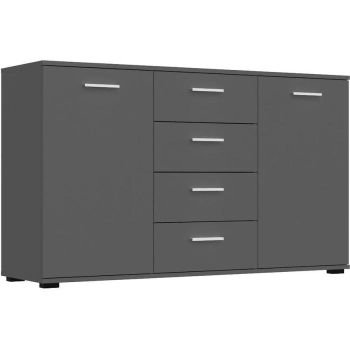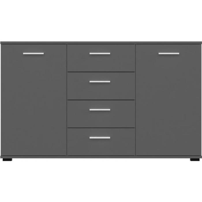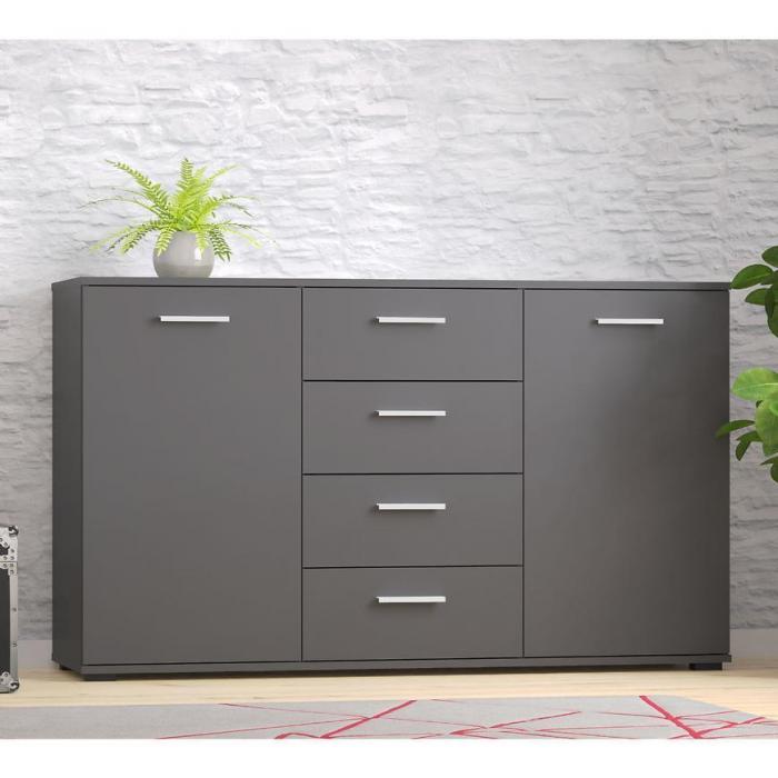 Komoda Chicago to klasyczny mebel do pokoju dziennego lub sypialni. Szary kolor mebla wpasuje się w wiele aranżacji w nowoczesnych wnętrzach jak również we wnętrzach klasycznych. Szafka posiada szuflady i drzwiczki dzięki czemu ma łatwy dostęp do wnętrza oraz odpowiednią przestrzeń do przechowywania odzieży lub innych przedmiotów. Płyta laminowana to płyta, z której wykonano komodę.