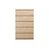 Komoda Chiva to mebel idealny do pokoju dziennego lub sypialni. Mebel wpasuje się w wiele aranżacji w nowoczesnych wnętrzach jak również we wnętrzach klasycznych. Komoda Chiva wykonana została w kolorze dąb sonoma, który imituje naturalny rysunek słojów. Aranżacje inspirowane drewnem nie tracą na popularności. Szafka posiada pojemne szuflady, które nadają się do przechowywania odzieży lub innych przedmiotów. Płyta laminowana o grubości 15mm to płyta, z której wykonano komodę.