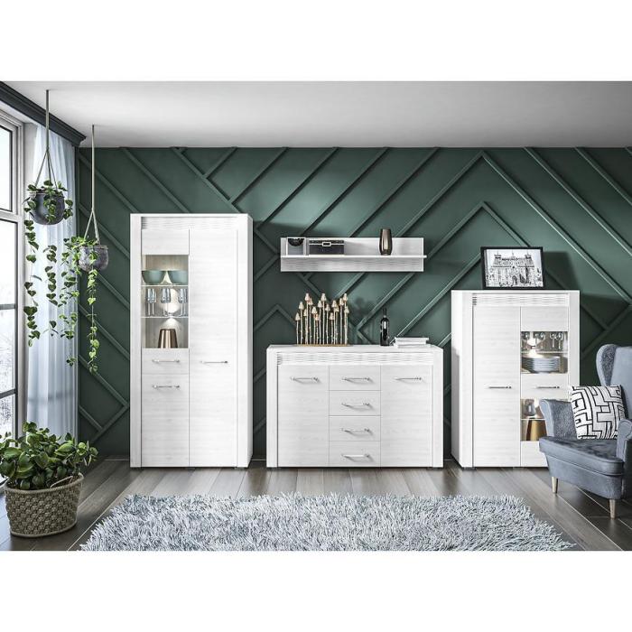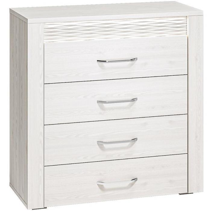 Komoda Clermont to mebel idealny do pokoju dziennego lub salonu. Meble posiadają podświetlaną, ryflowaną wstawkę MDF. W zestawie znajduja się metalowe, chromowane uchwyty. Wzór jasnego drewna rozjaśni wnętrze, nadając przy tym elegancji. Kolekcja Clermont wpasuje się w wiele aranżacji w nowoczesnych wnętrzach jak również we wnętrzach klasycznych. Szafka posiada szuflady, które nadają się do przechowywania odzieży lub innych przedmiotów. Płyta laminowana to płyta, z której wykonano komodę. Do kompletu można dokupić inne meble z kolekcji.