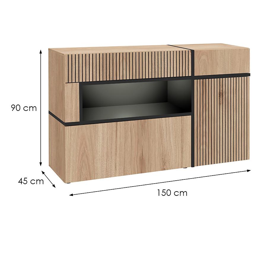 Nowoczesny charakter kolekcji podkreślają eleganckie detale i wykończenie, które nadają meblom lekkości i harmonii. Przemyślane rozwiązania konstrukcyjne zapewniają wygodne przechowywanie, co sprawia, że salon staje się nie tylko stylowy, ale również uporządkowany i praktyczny. Komody, witryny, szafki RTV i półki oferują wiele miejsca na najpotrzebniejsze rzeczy, jednocześnie podkreślając nowoczesny charakter wnętrza.