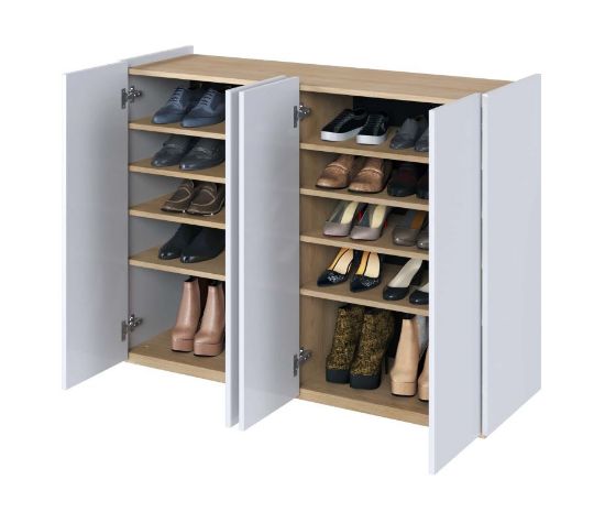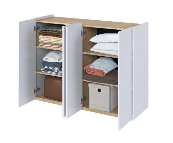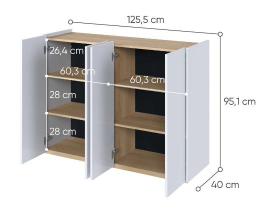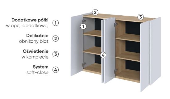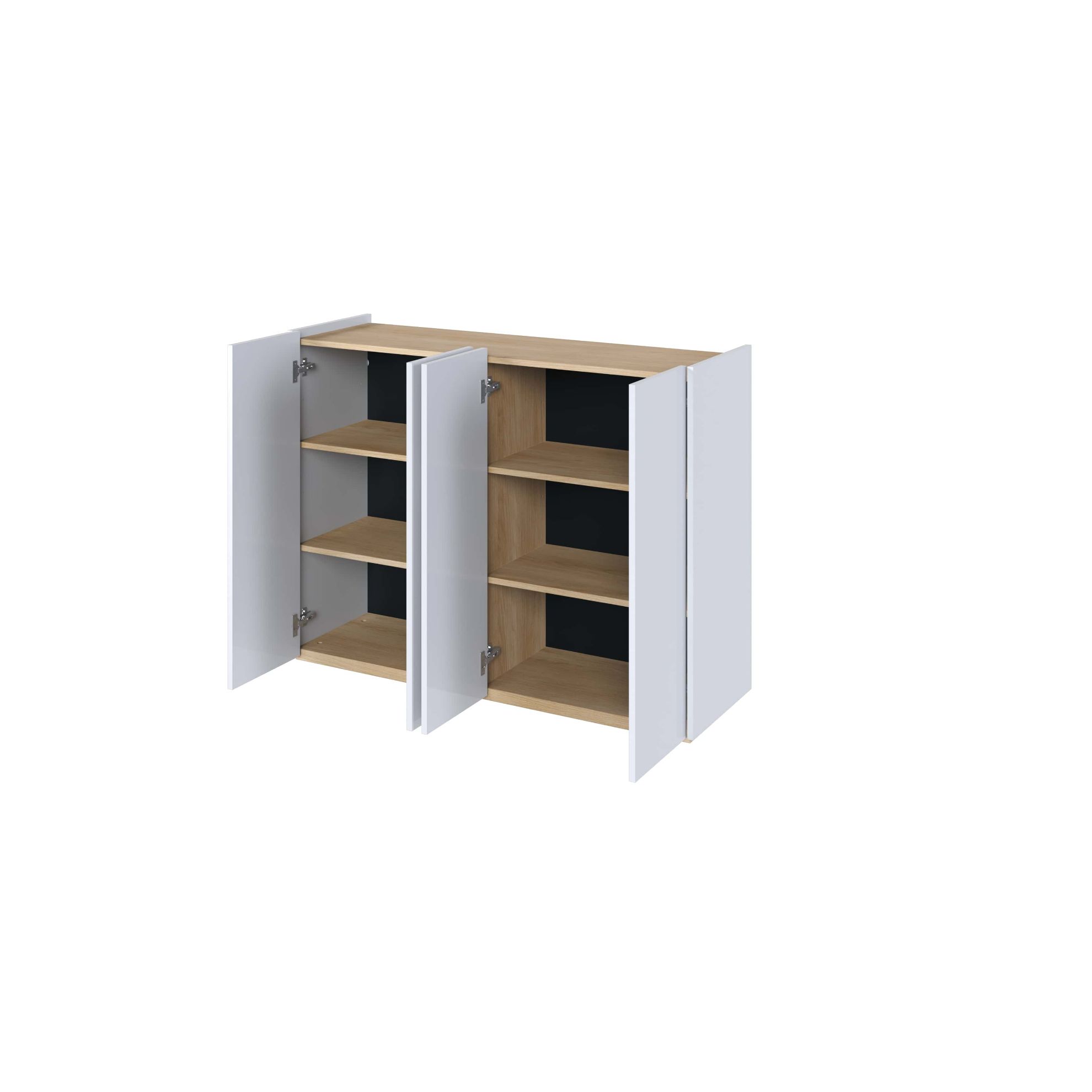 Komoda czterodrzwiowa Easy EA-02 z oświetleniem biały połysk/dąb scandi