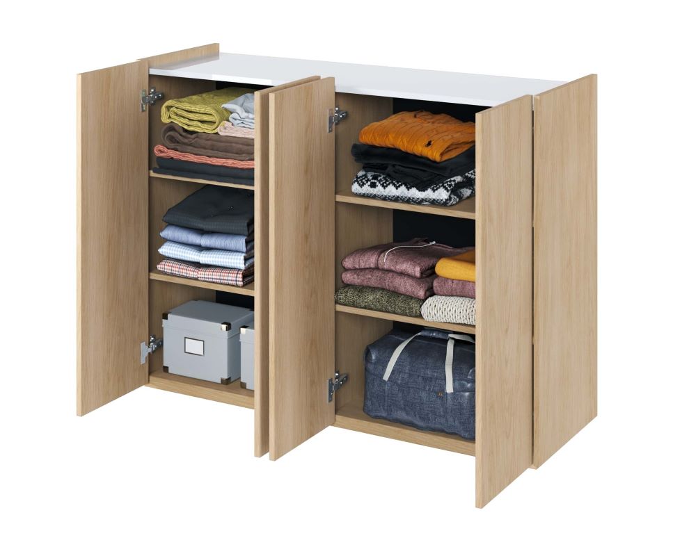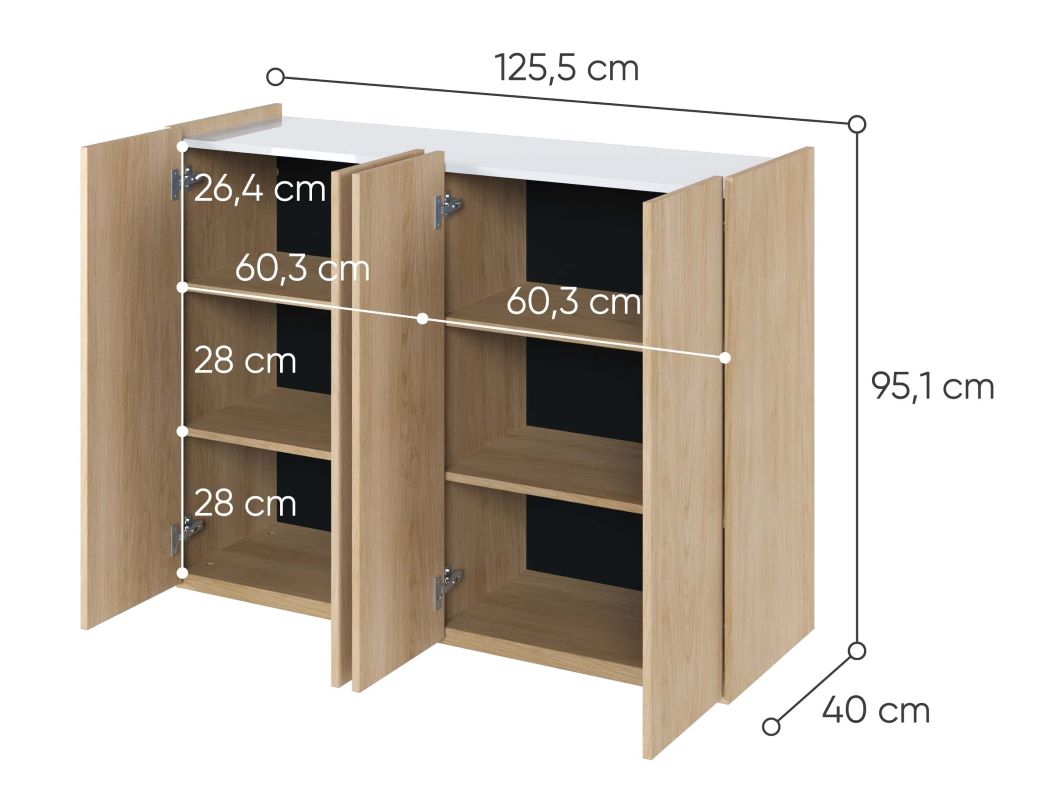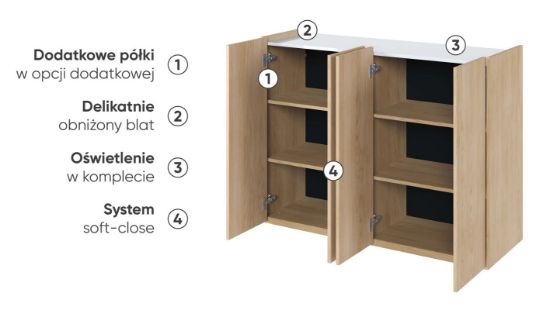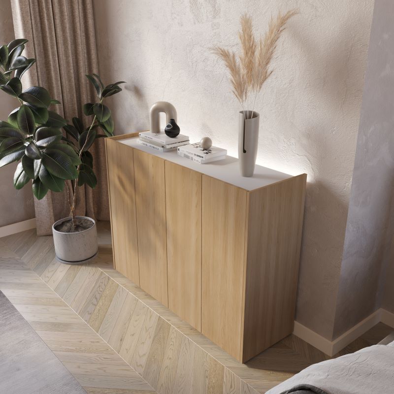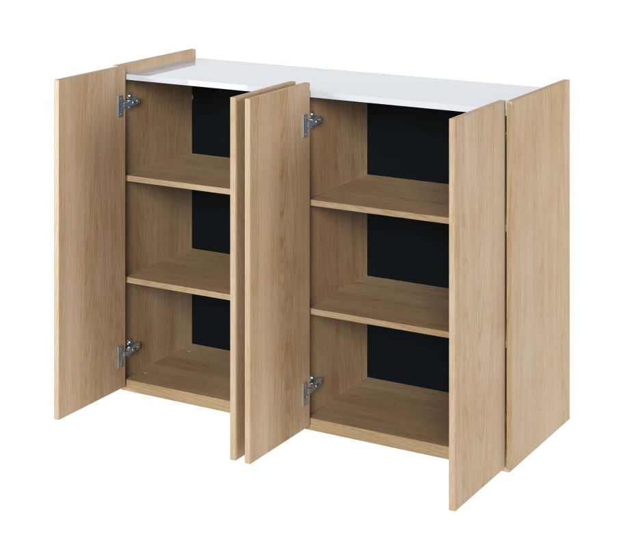 Komoda czterodrzwiowa Easy EA-02 z oświetleniem dąb scandi/biały połysk