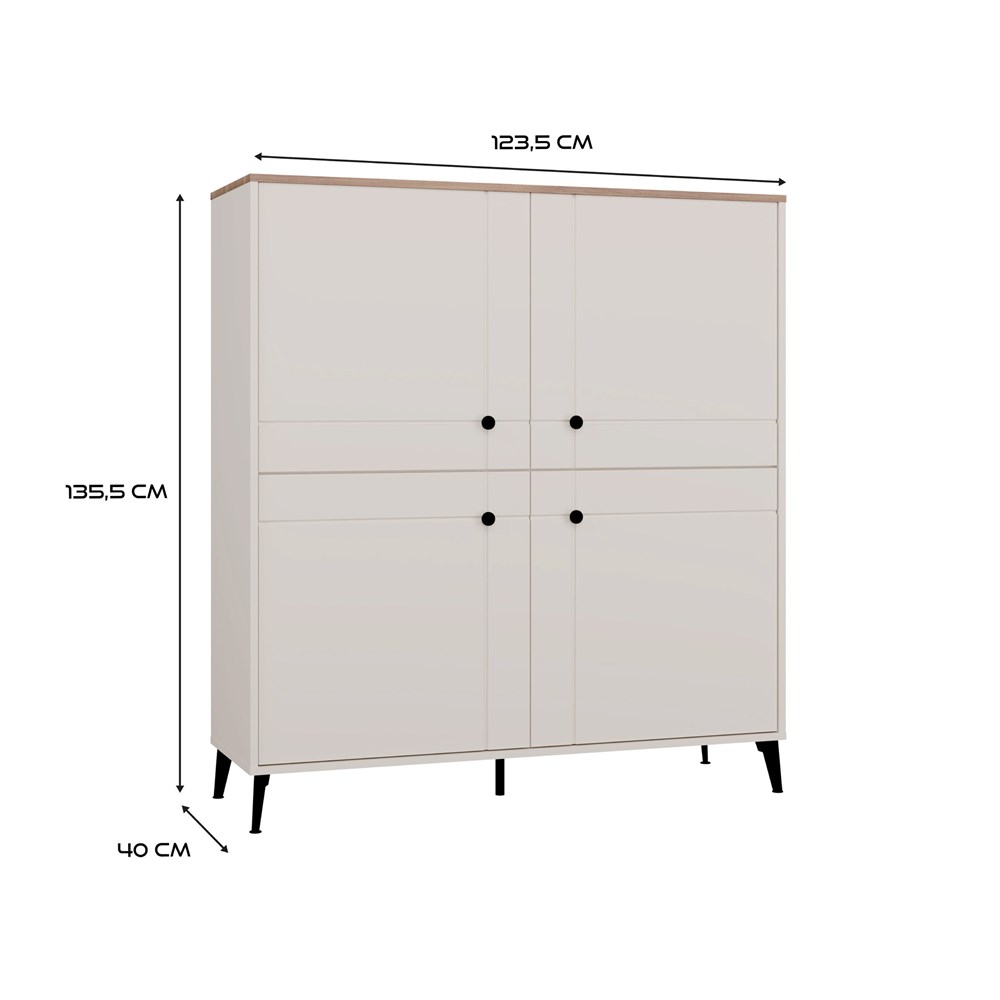 Dzięki przemyślanym wymiarom komoda czterodrzwiowa Punto Kaszmir Beżowy/Dąb Castello doskonale sprawdzi się zarówno w mniejszych, jak i bardziej przestronnych pomieszczeniach.