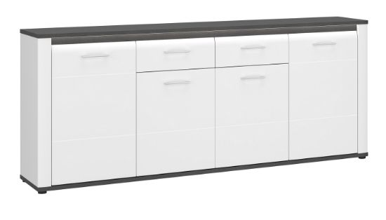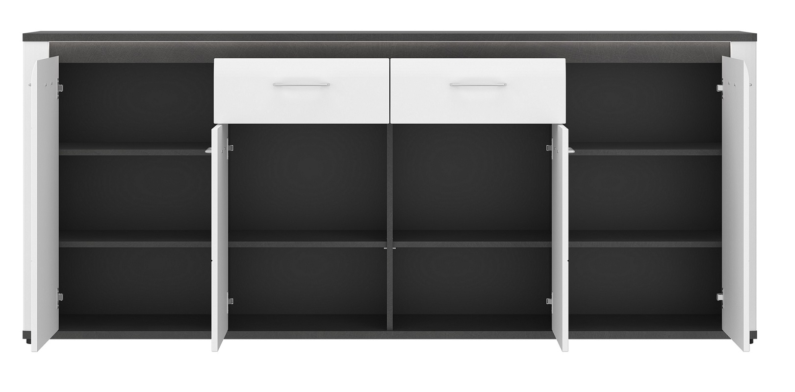 Komoda Alassio ALSK05 to czterodrzwiowy mebel zaprojektowany z myślą o eleganckim i funkcjonalnym przechowywaniu. Idealnie sprawdzi się w salonie, pokoju dziennym lub sypialni, oferując przestronną, podzieloną na sekcje przestrzeń do organizacji. Dzięki czterem drzwiczkom i dwóm szufladom pomieści zarówno większe, jak i mniejsze przedmioty, umożliwiając zachowanie porządku w Twoim wnętrzu.