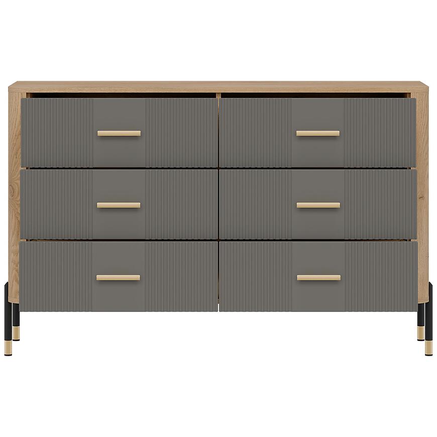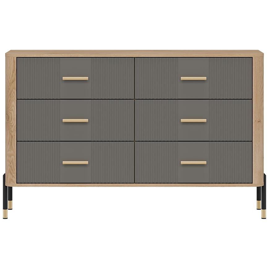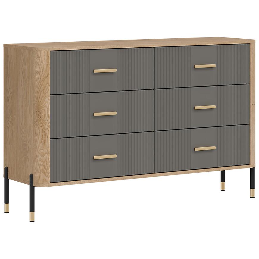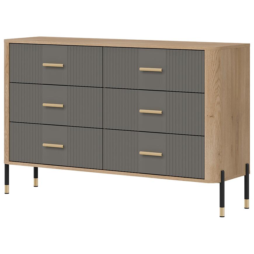 Komoda Dante Dt04 Dąb Cremona/Szary to elegancki mebel, który łączy stylowy wygląd z praktycznym przechowywaniem. Posiada cztery i więcej pojemnych szuflad, które pozwalają uporządkować dokumenty, tekstylia czy drobiazgi, zachowując porządek w salonie, jadalni lub pokoju dziennym. Szary kolor frontów w matowym wykończeniu idealnie współgra z jasnym korpusem w odcieniu dąb Cremona, tworząc harmonijną i nowoczesną kompozycję.