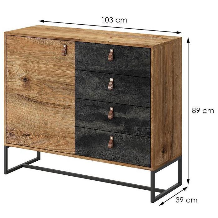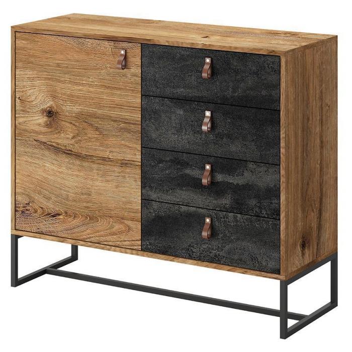 Komoda Dark wpasuje się w każdą przestrzeń. Posiada 1 zamykaną szafkę oraz 4 szuflady, które pozwolą na odpowiednie zagospodarowanie. Dark doskonale odnajdzie się w każdym pomieszczeniu, również w jadalni czy salonie.