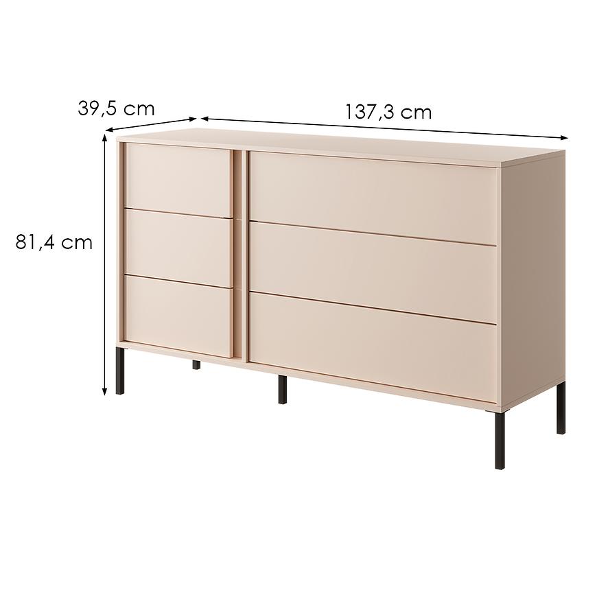 Komoda DAST w kolorze beżowym to wyrafinowane połączenie funkcjonalności i nowoczesnego designu. Z sześcioma szufladami oferuje znaczną ilość miejsca do przechowywania, jednocześnie dodając elegancji i stylu do Twojej przestrzeni.