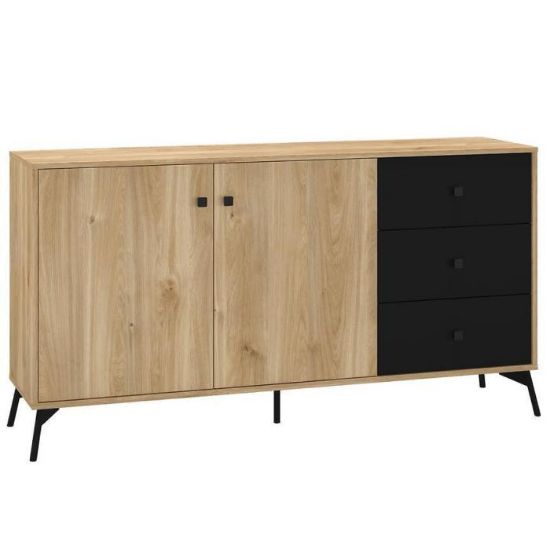Komoda Agis wpasuje się w każdą przestrzeń. Posiada trzy szuflady oraz zamykaną szafkę, które pozwolą na odpowiednie zagospodarowanie. Komoda doskonale odnajdzie się w każdym pomieszczeniu, również w jadalni czy salonie.