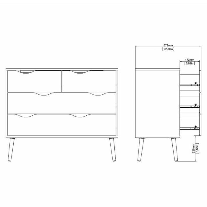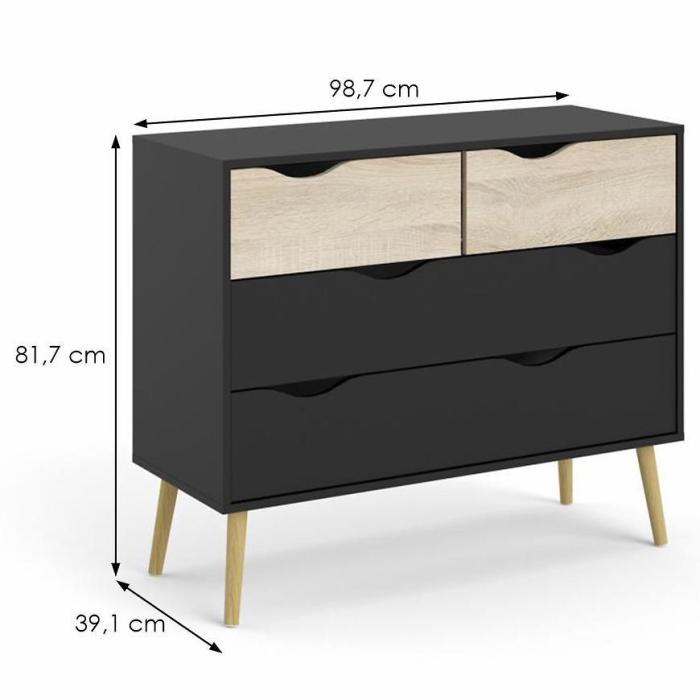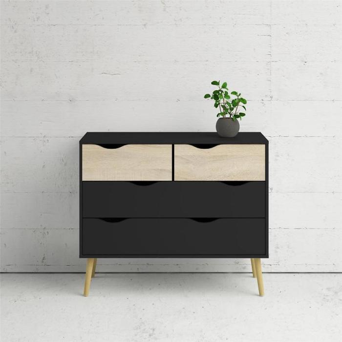 Komoda Delta wpasuje się w każdą przestrzeń. Posiada cztery szuflady, które pozwolą na odpowiednie zagospodarowanie. Komoda doskonale odnajdzie się w każdym pomieszczeniu, również w jadalni, pokoju młodzieżowym czy salonie.