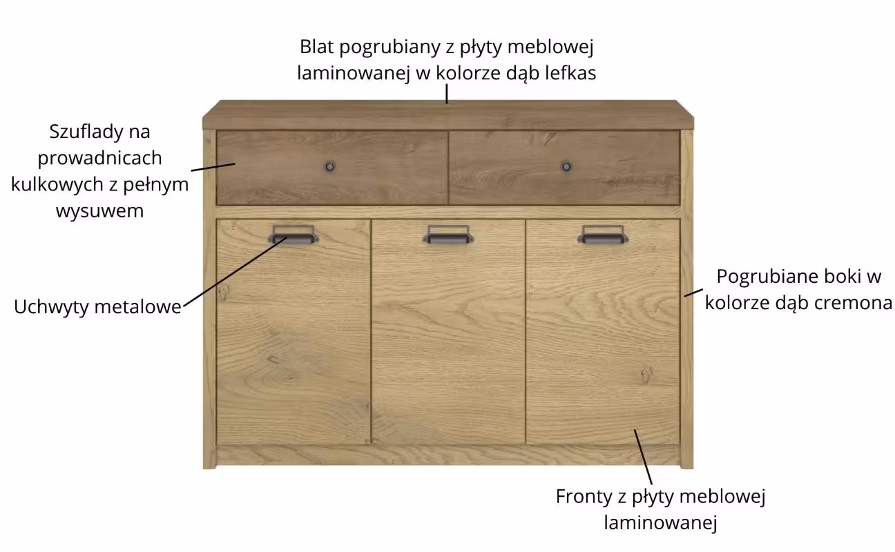 Komoda dąb lefkas / dąb cremona – spójny wygląd i wyważona kolorystyka