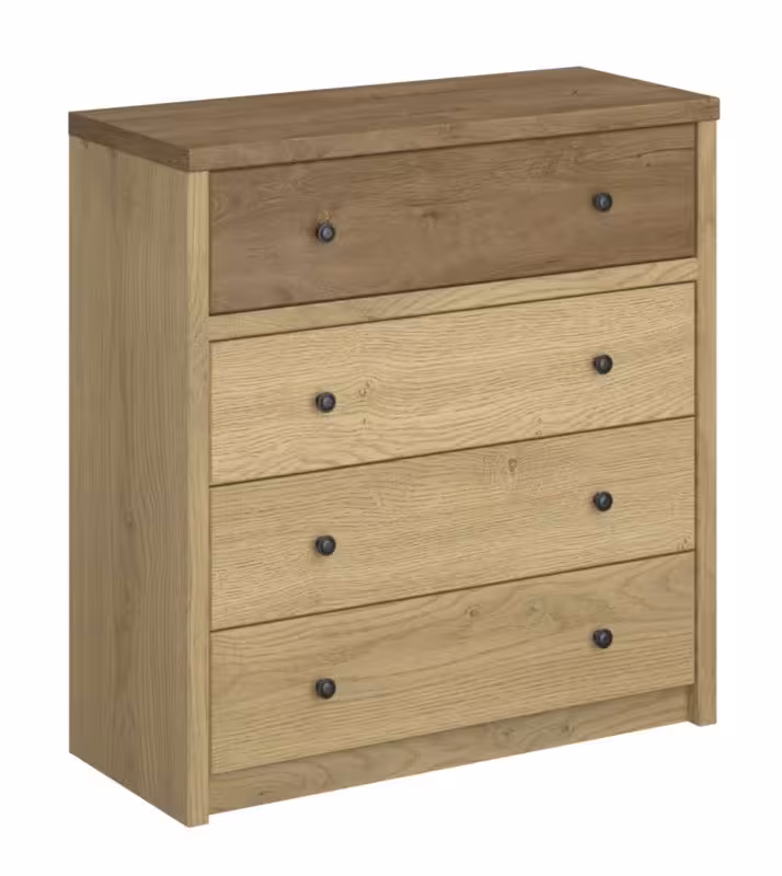 Komoda Denzel 4S to mebel zaprojektowany z myślą o przechowywaniu w uporządkowany sposób, bez zajmowania nadmiernej przestrzeni. Cztery szuflady pozwalają rozdzielić różne kategorie rzeczy – od ubrań, przez dokumenty, po drobne akcesoria domowe. Taki układ ułatwia codzienne korzystanie i eliminuje konieczność przechowywania wszystkiego w jednym miejscu.